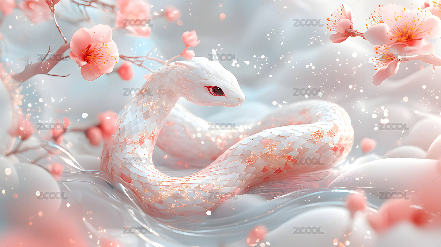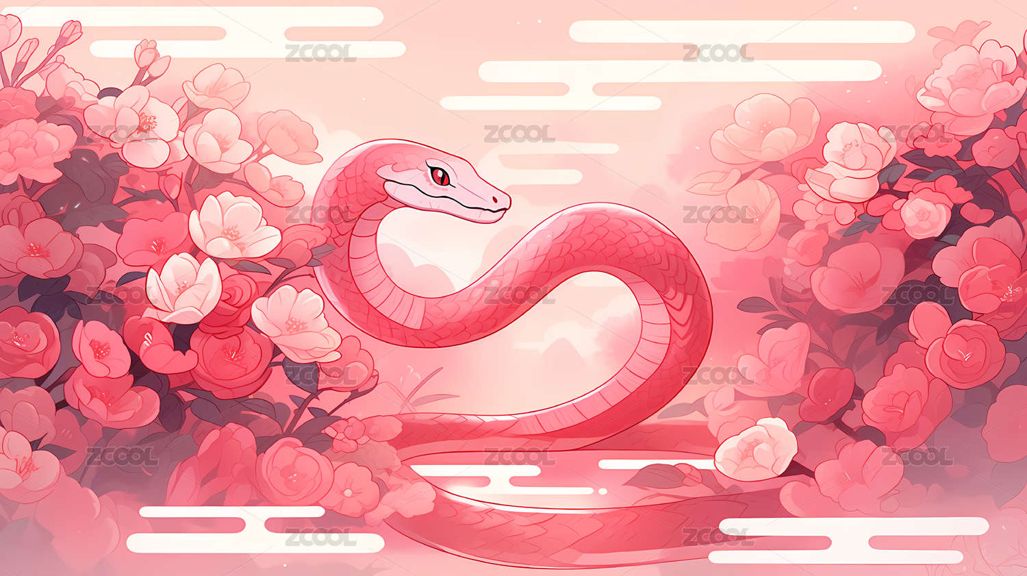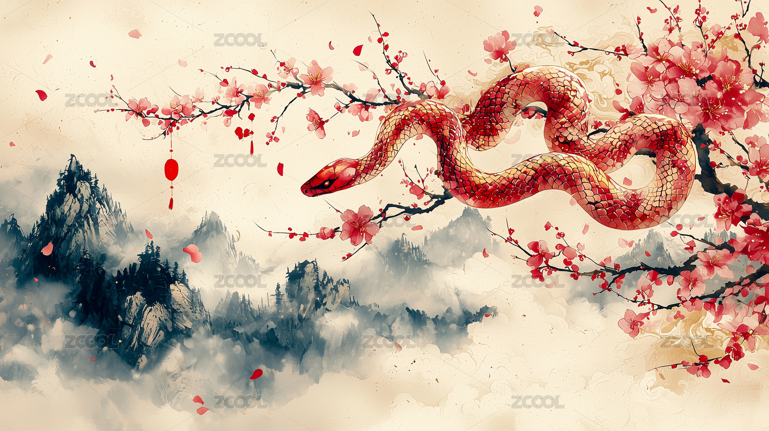 蛇年,2025,蛇,动物,生肖,抽象,写意,国风,水墨,工笔