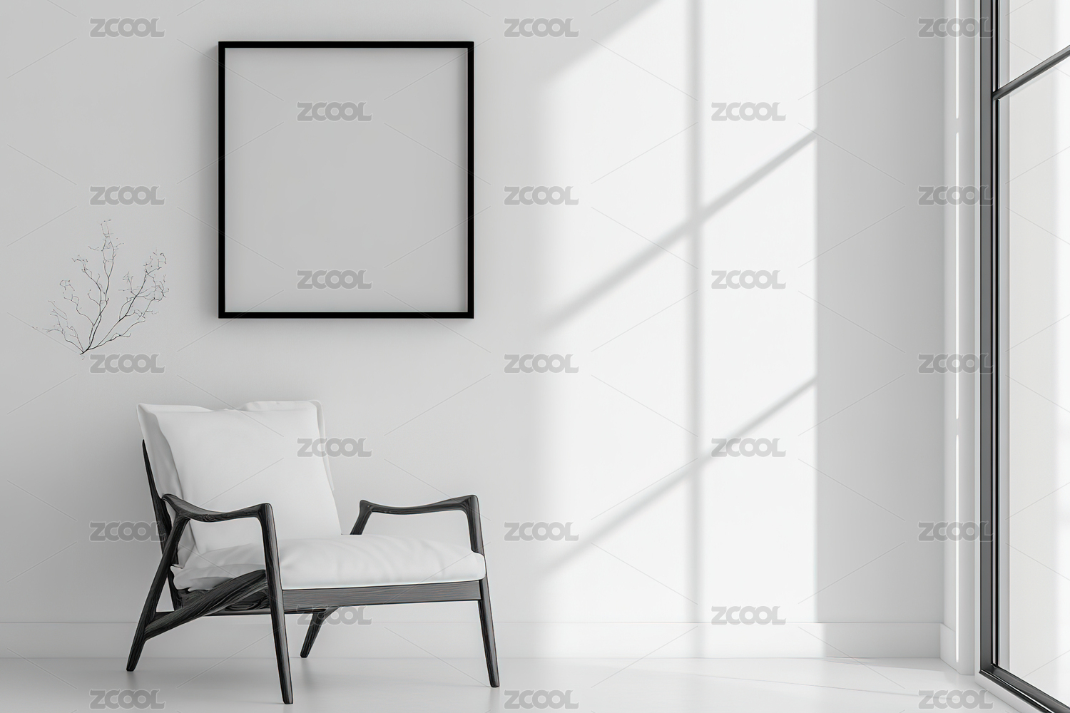 现代房间内部明亮干净设计沙发靠着墙壁背景