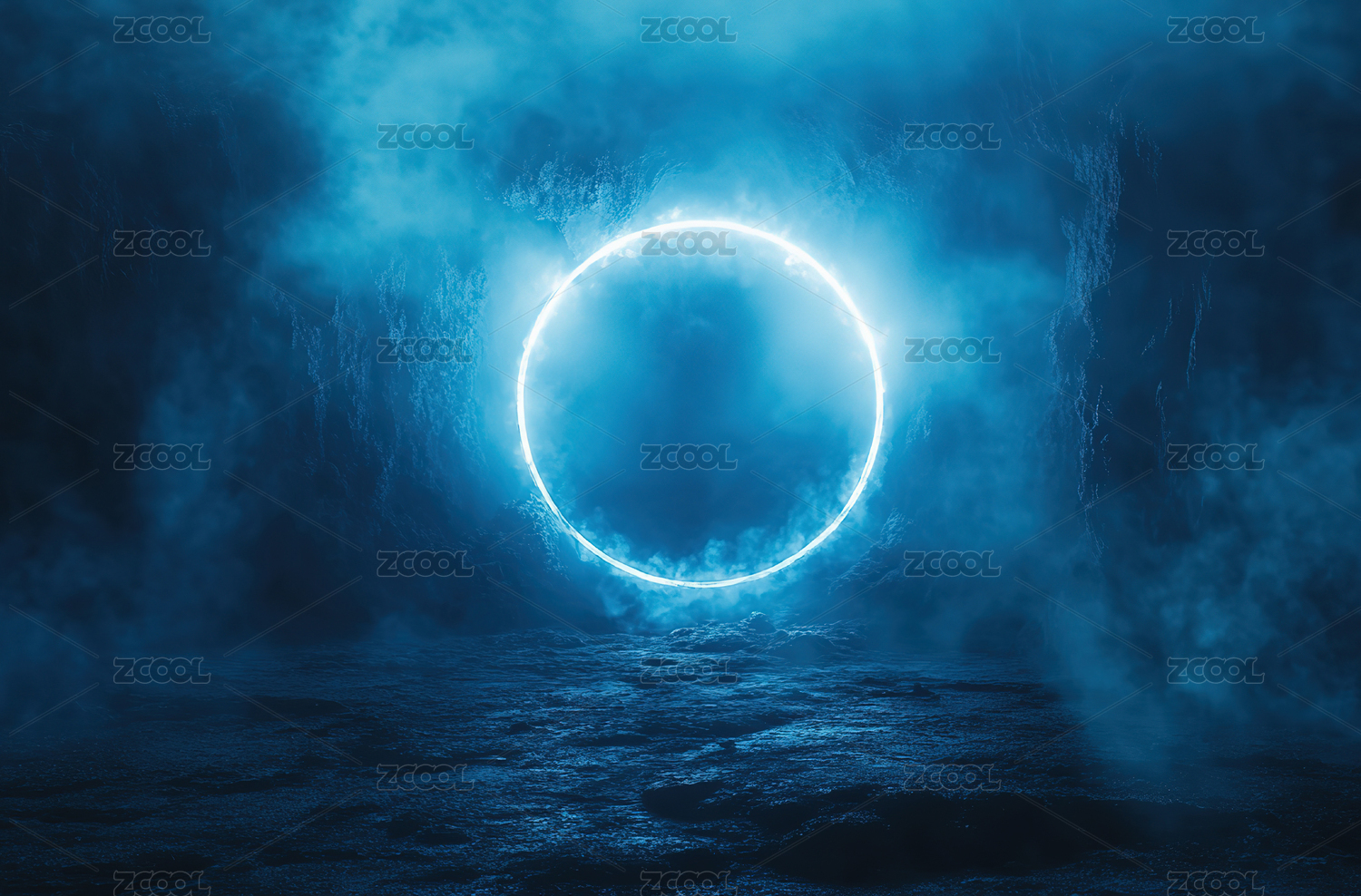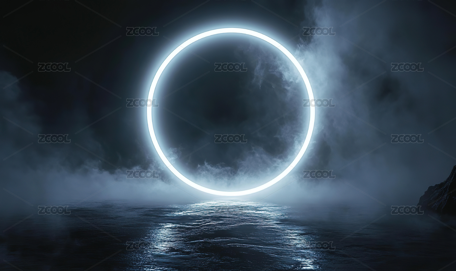 圆形发光圆环和水面创意背景