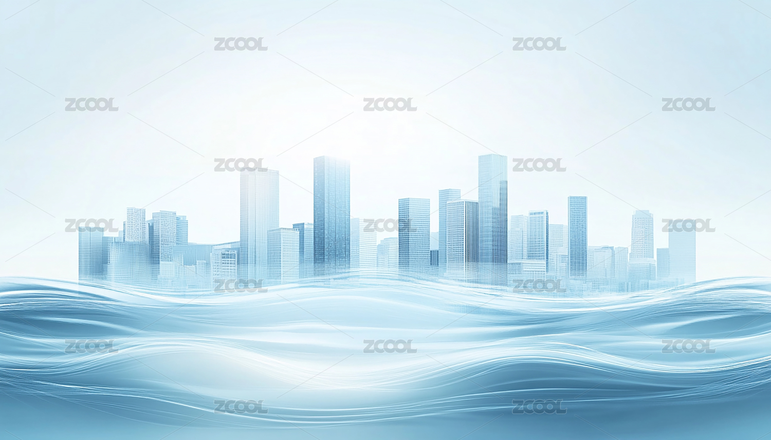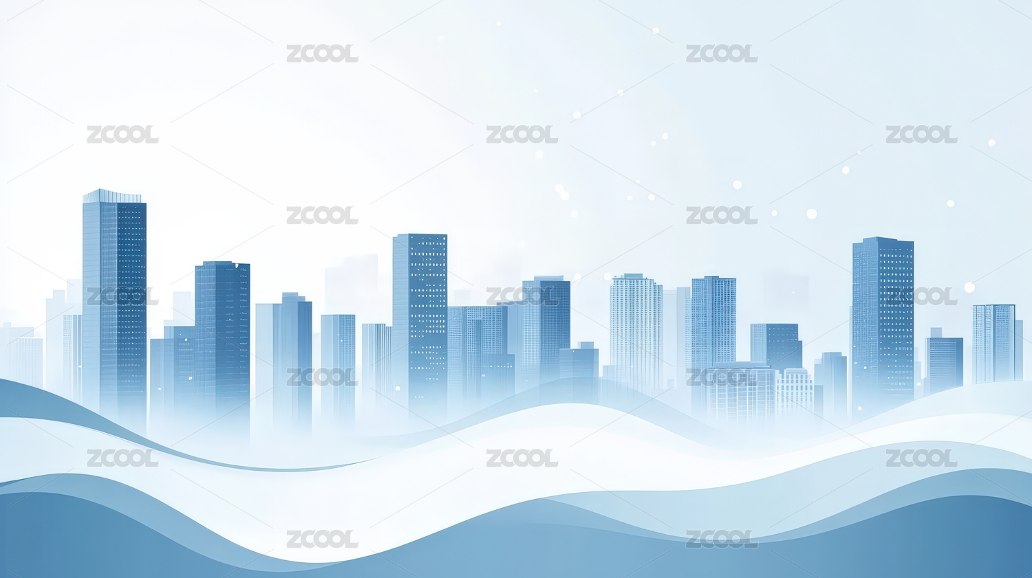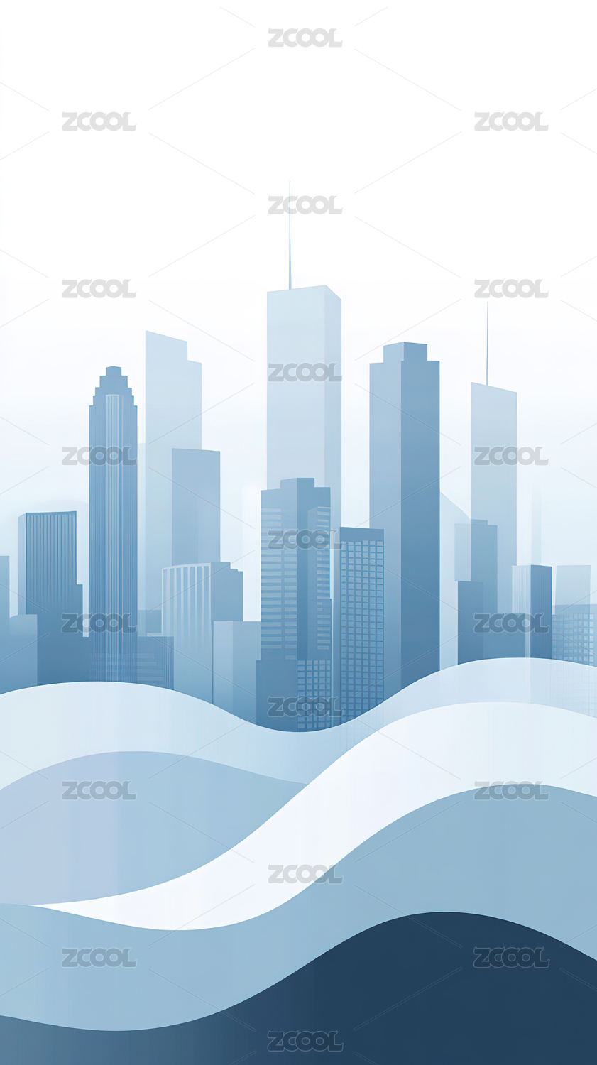 流畅的蓝色渐变波浪线条玻璃城市建筑