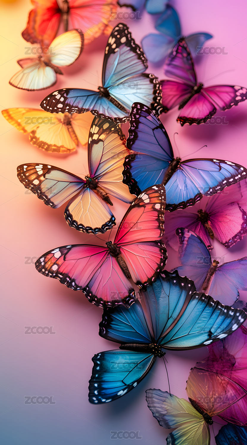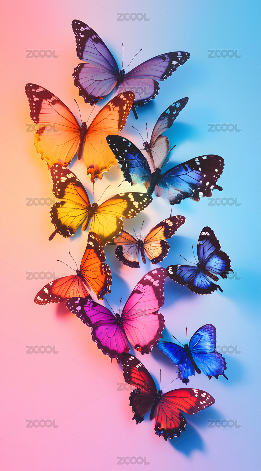 唯美梦幻展翅飞翔的蝴蝶图案印花插画