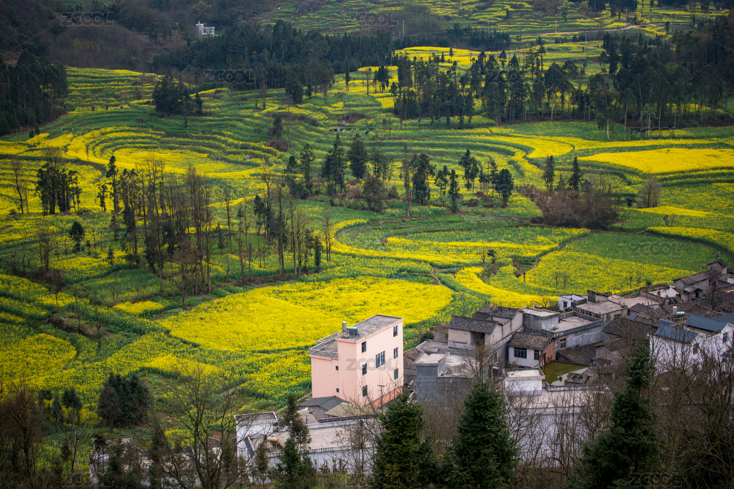 中国四川宜宾屏山中都油菜花海民居自然景观