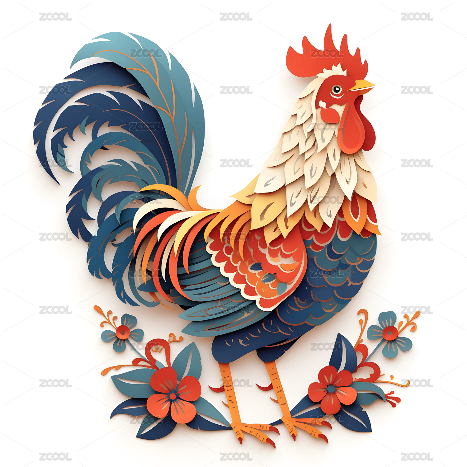 优雅立体鸡生肖抽象插画