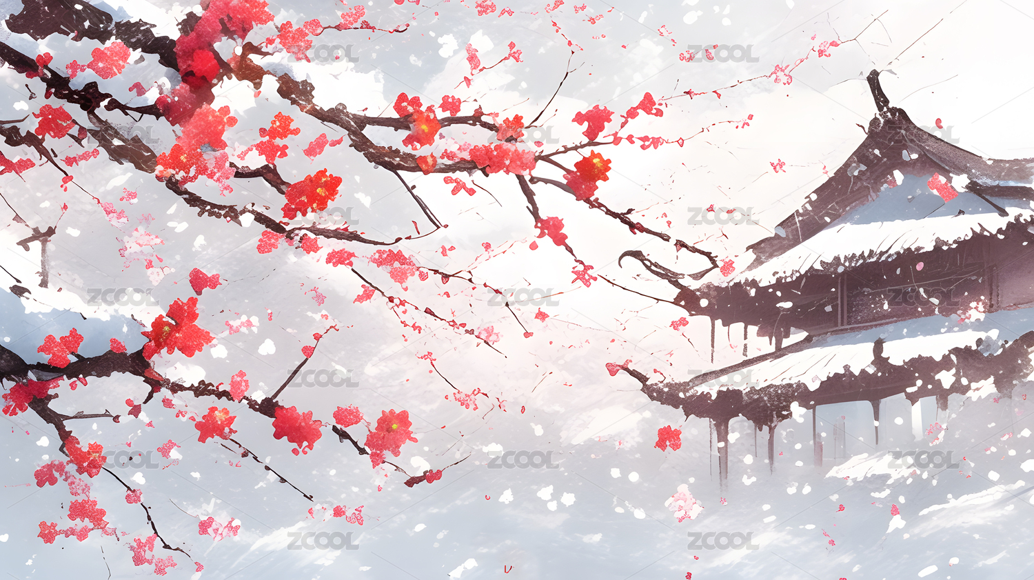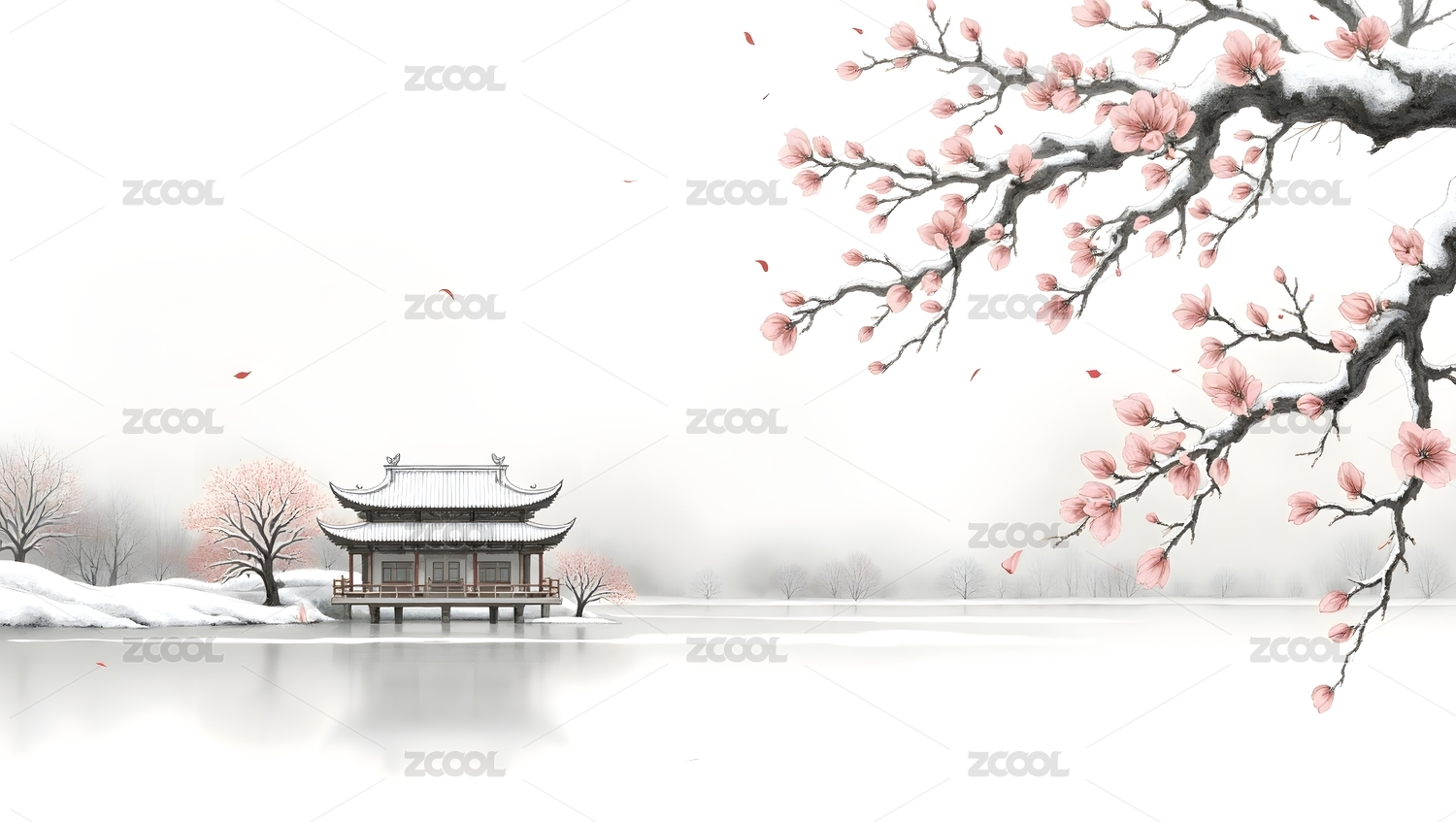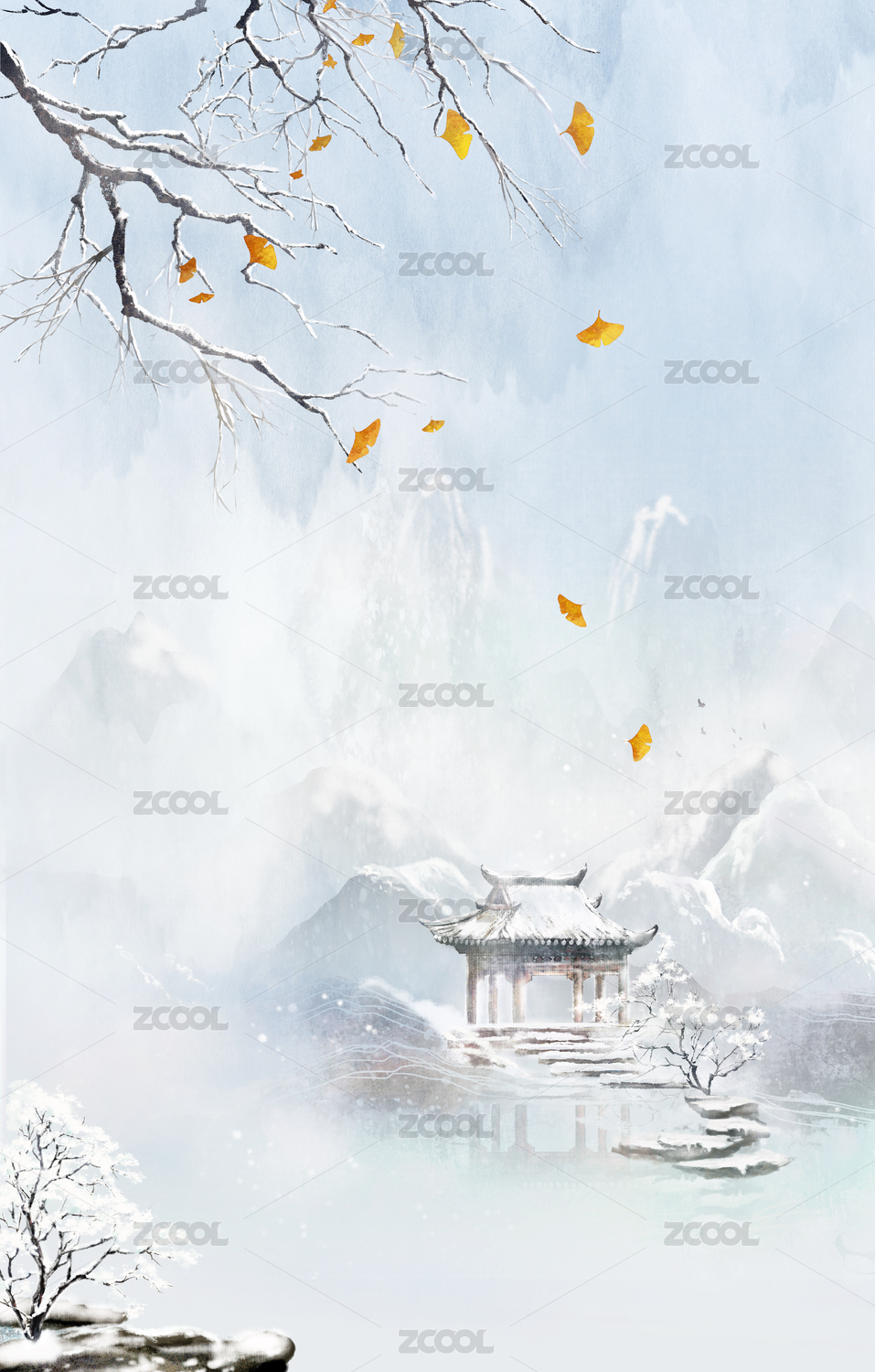 中国画,中国文化,风景,插画,二十四节气,户外,背景,水墨画,自然,冬天