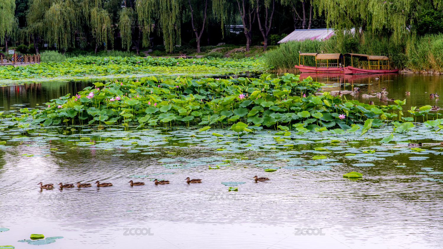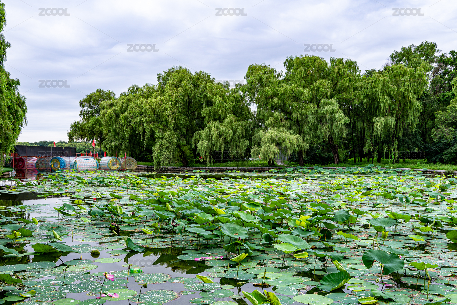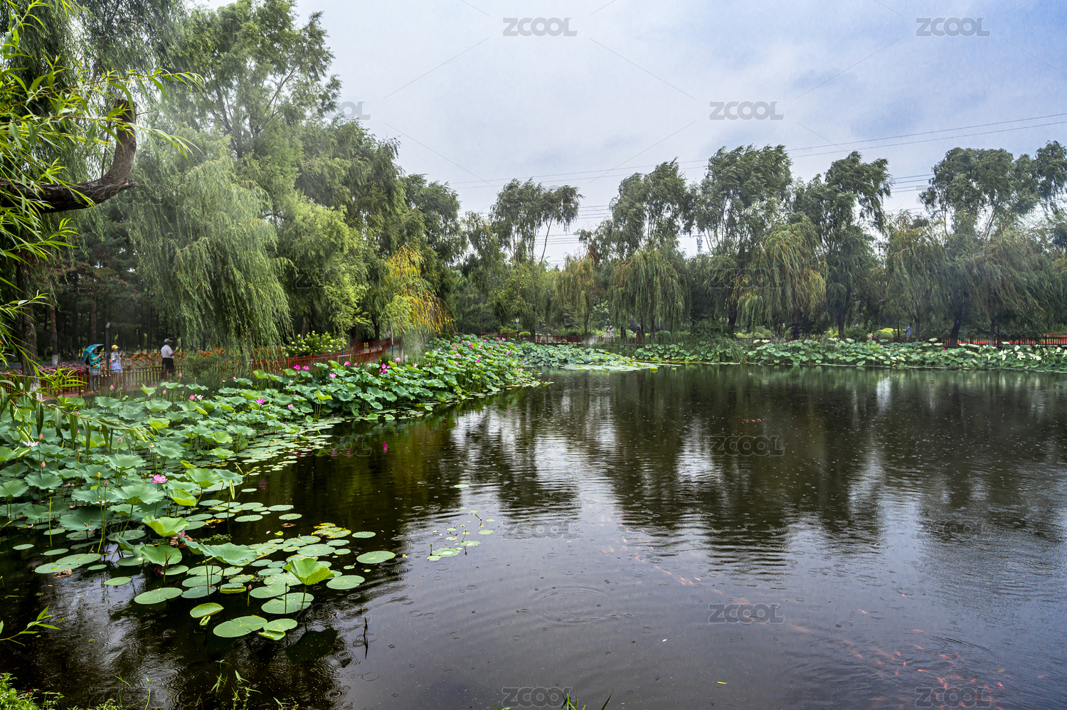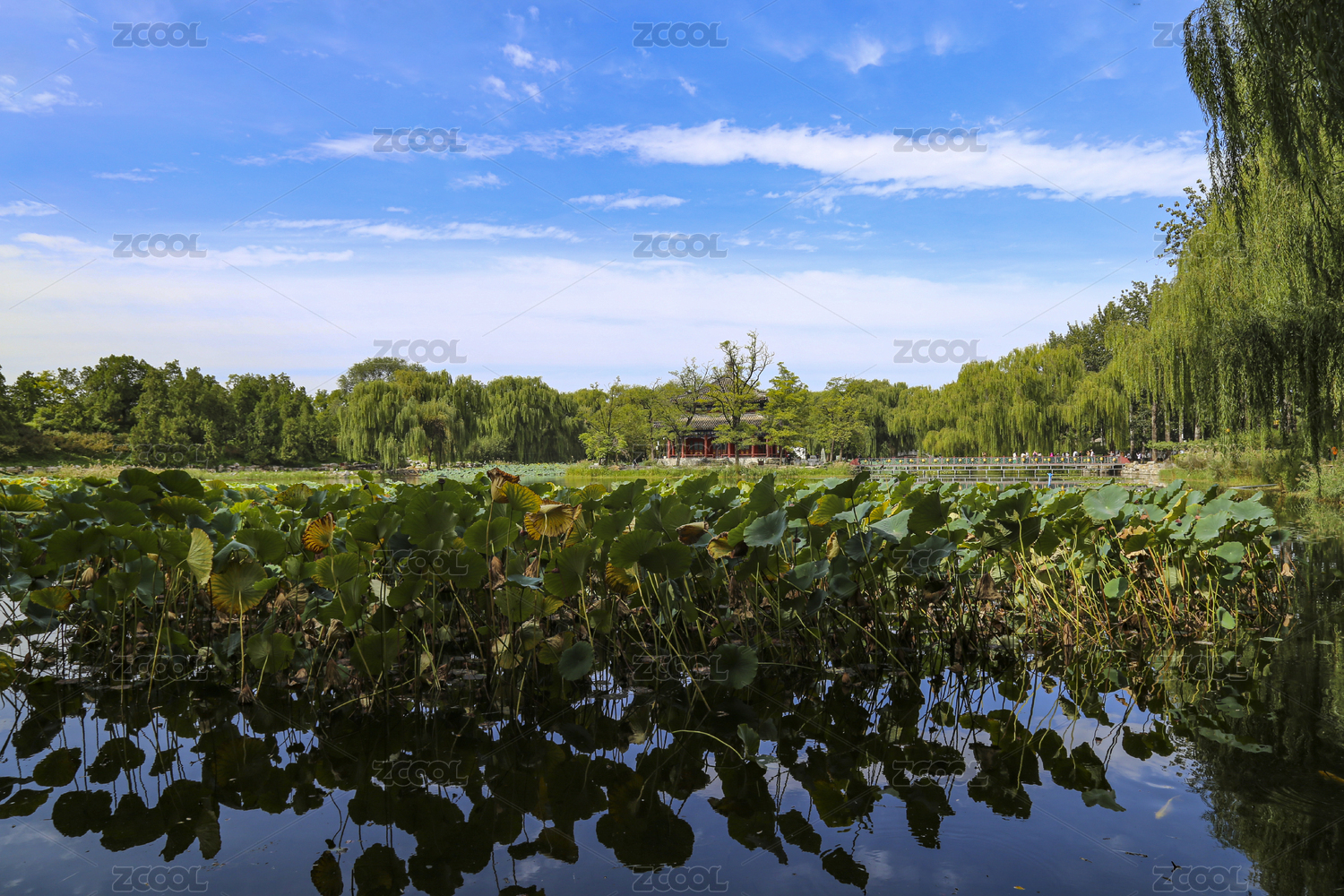 中国,长春,百花园,湖泊,水域,桥,亭子,树木,植物,荷花