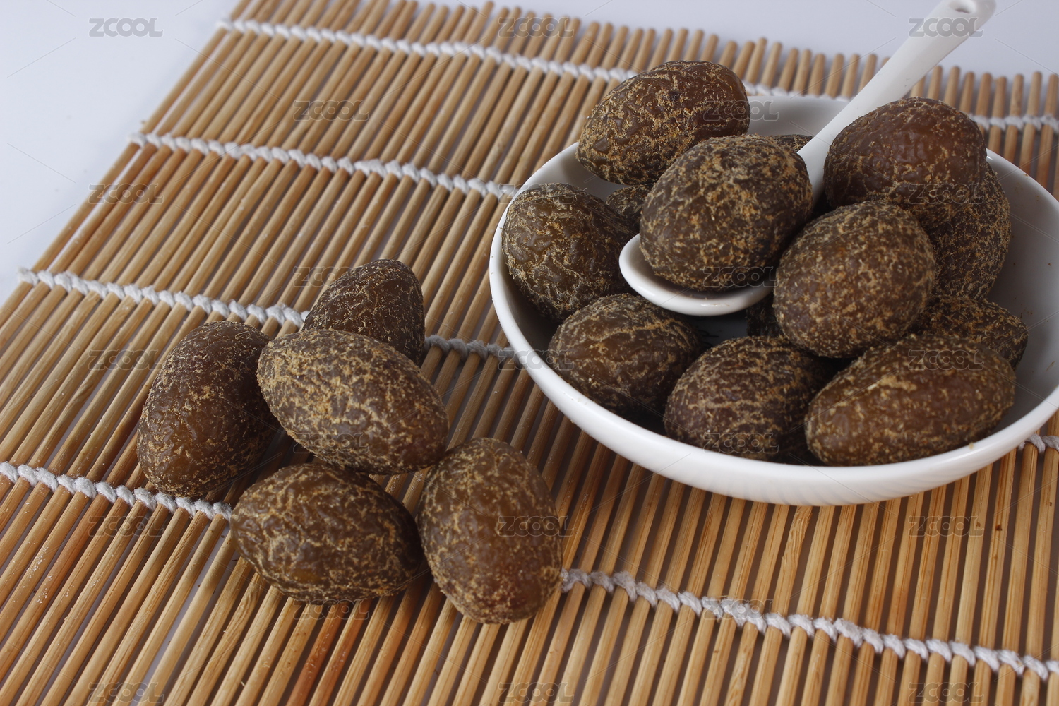 整齐排列的包裹有石灰和谷壳的中国美食皮蛋