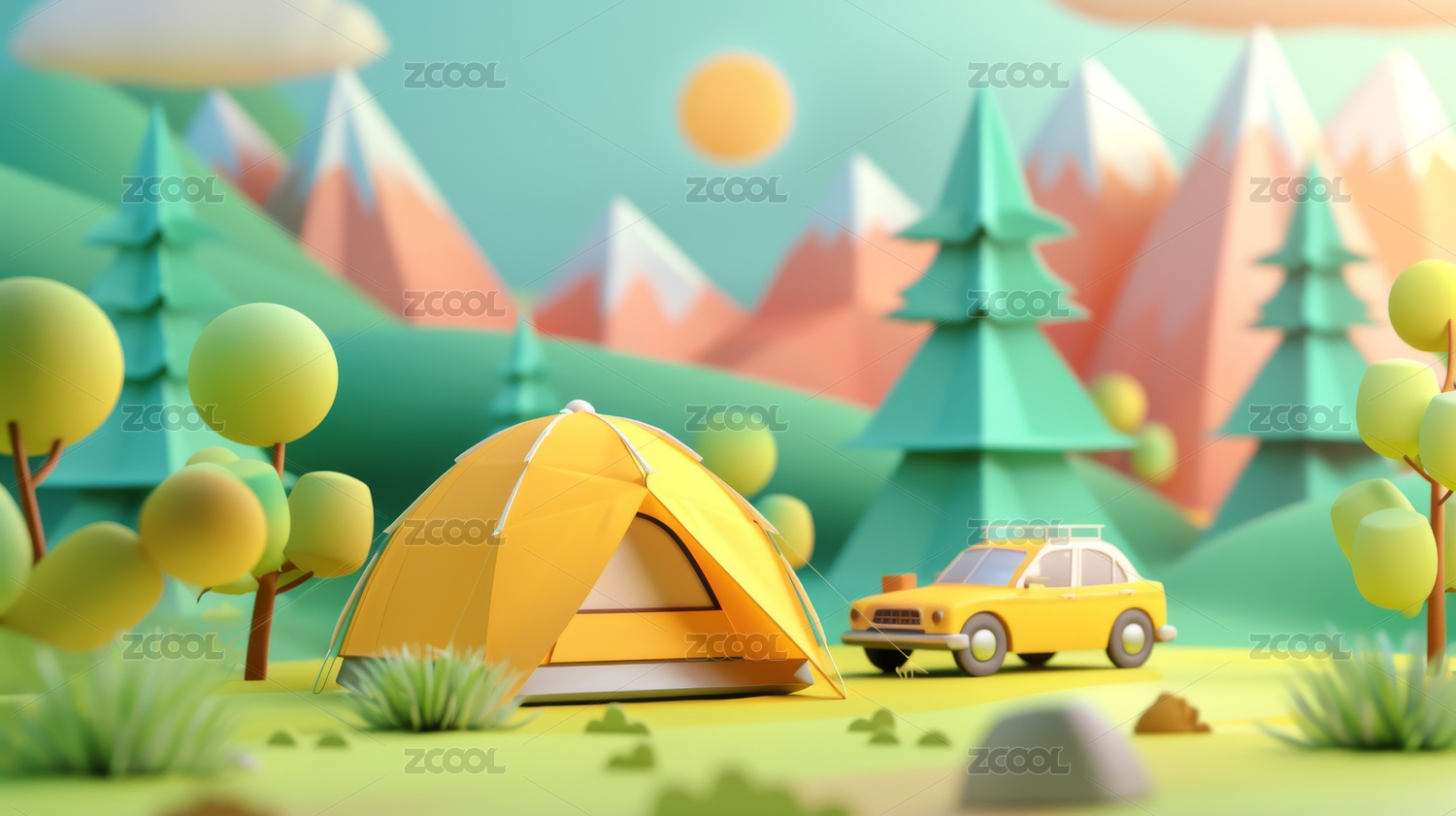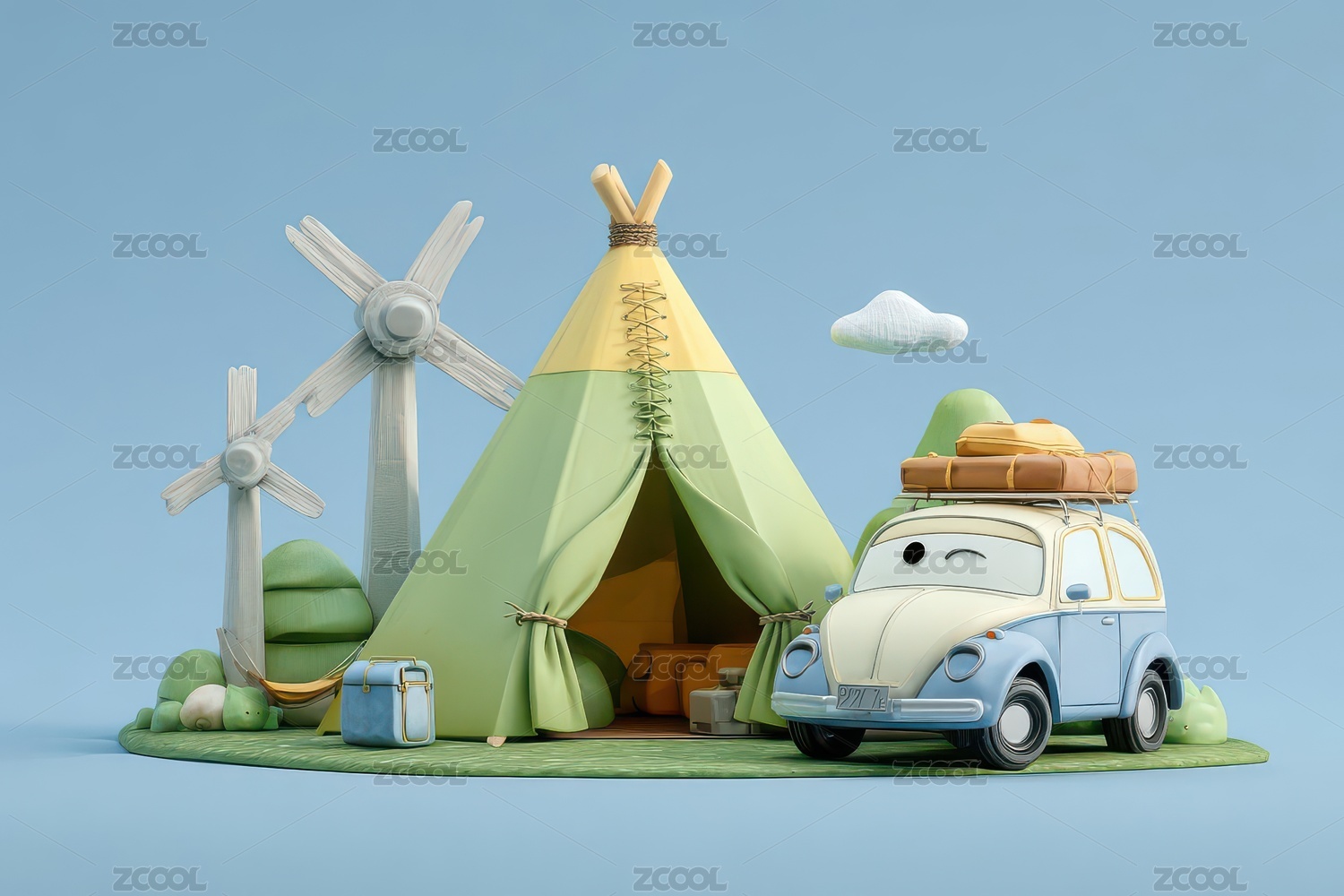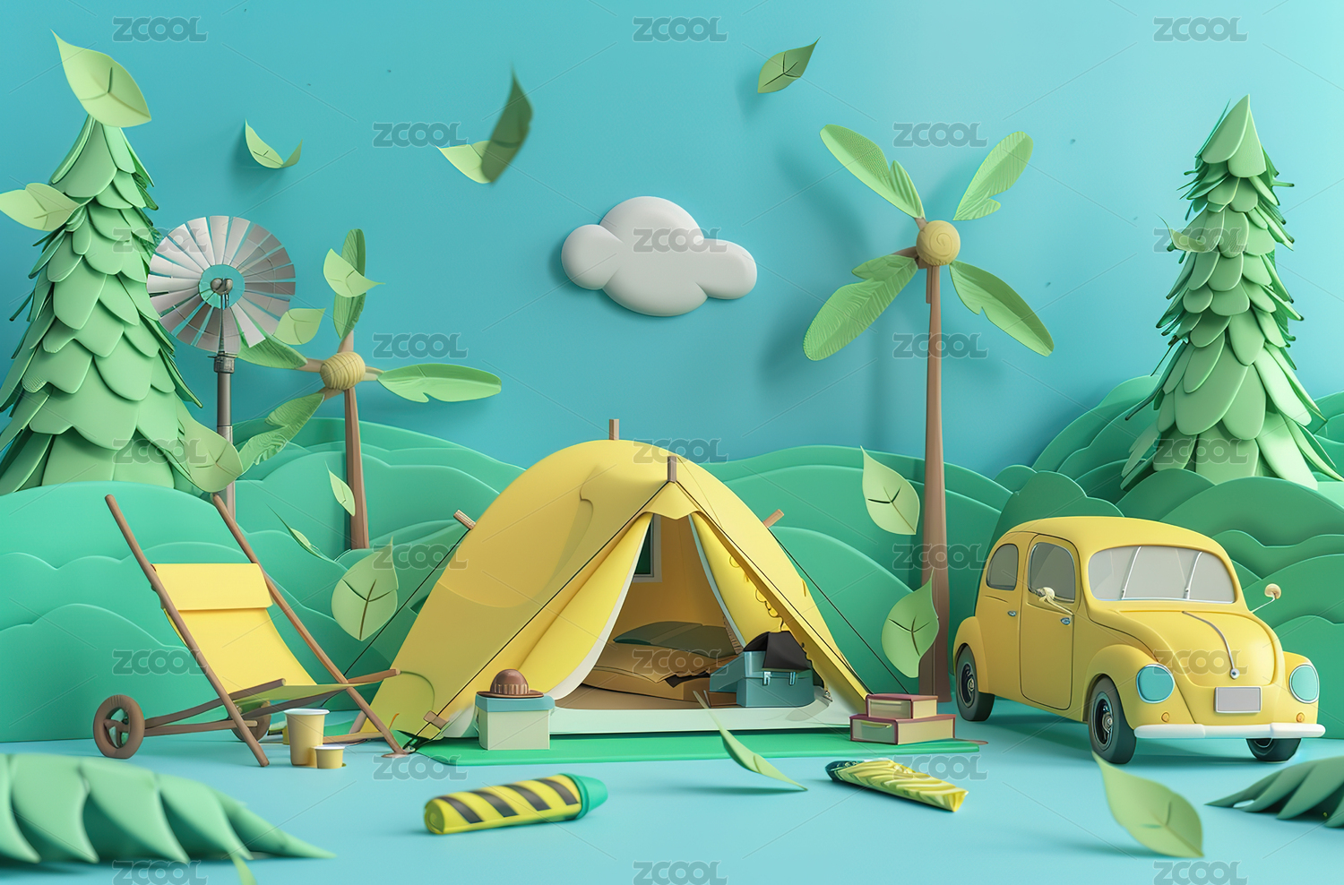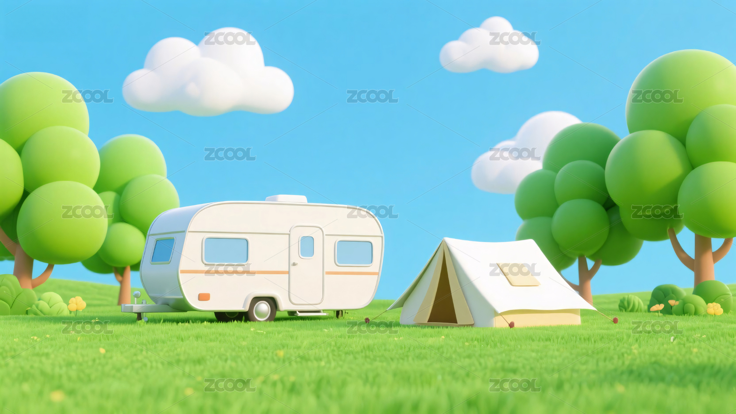 无人,自然,户外,地形,景象,插画,露营,汽车,草,夏天