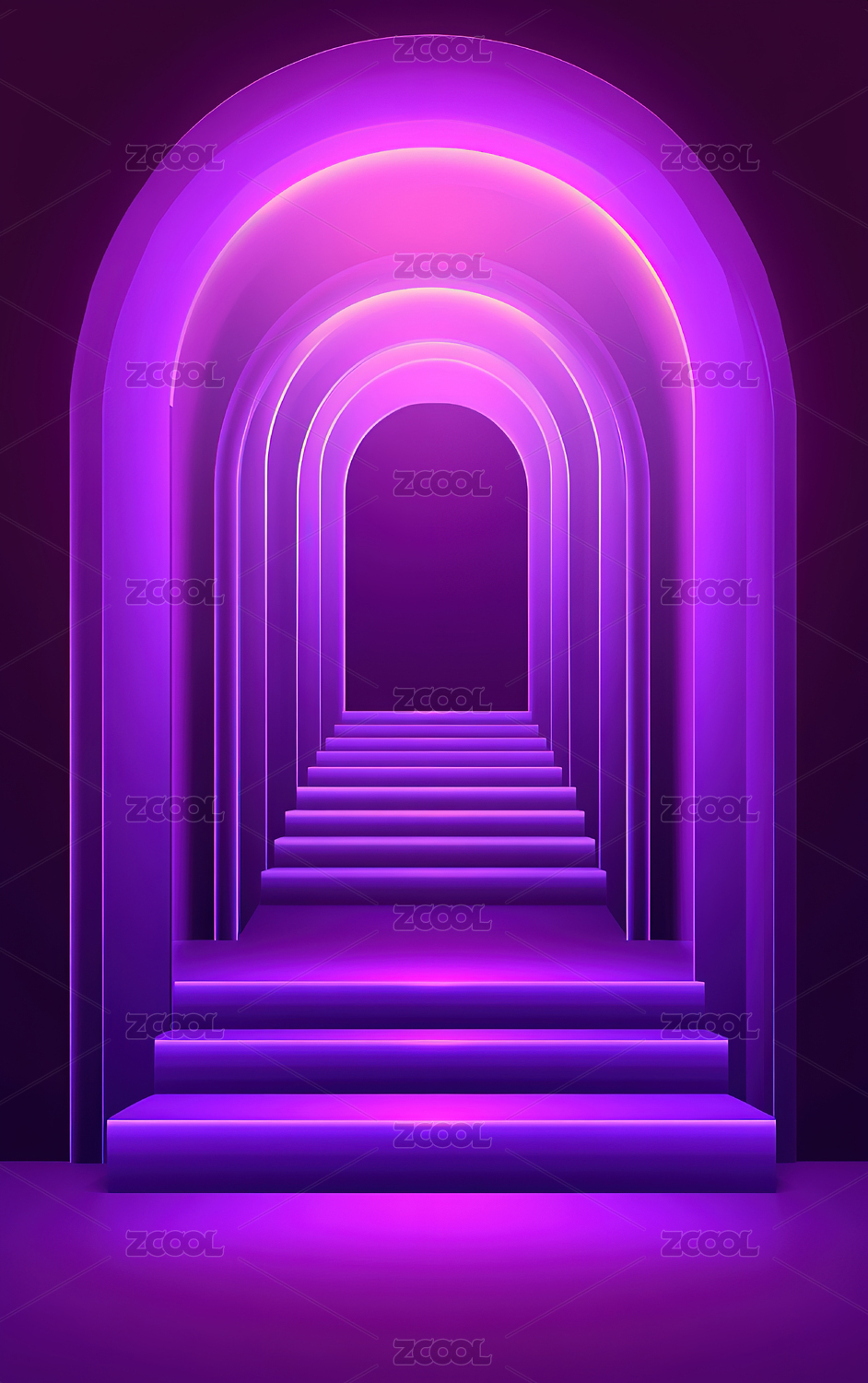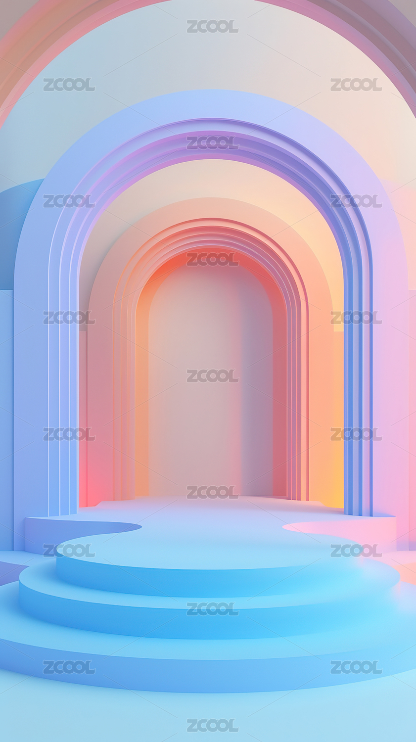 霓虹色调拱形通道
