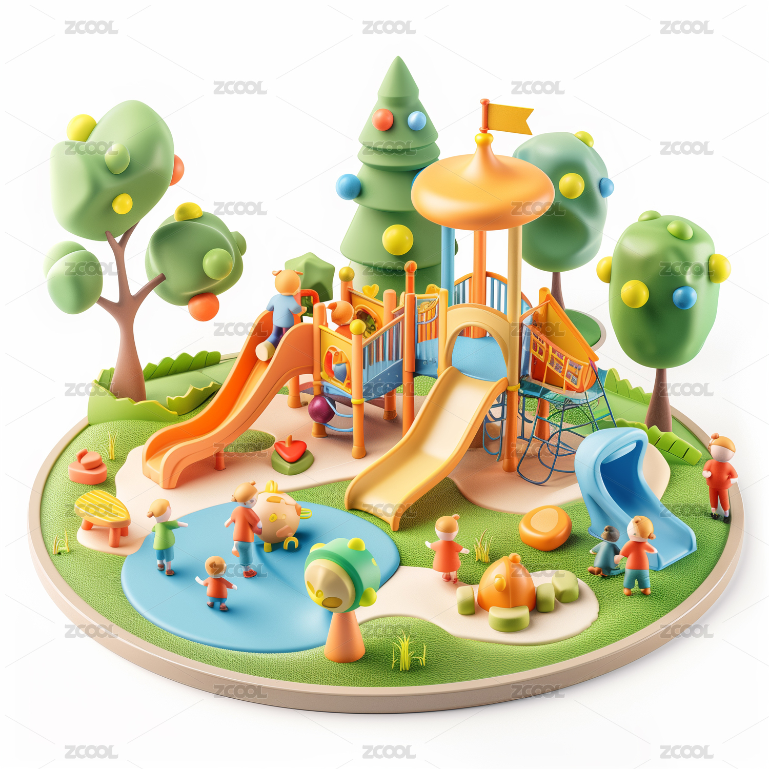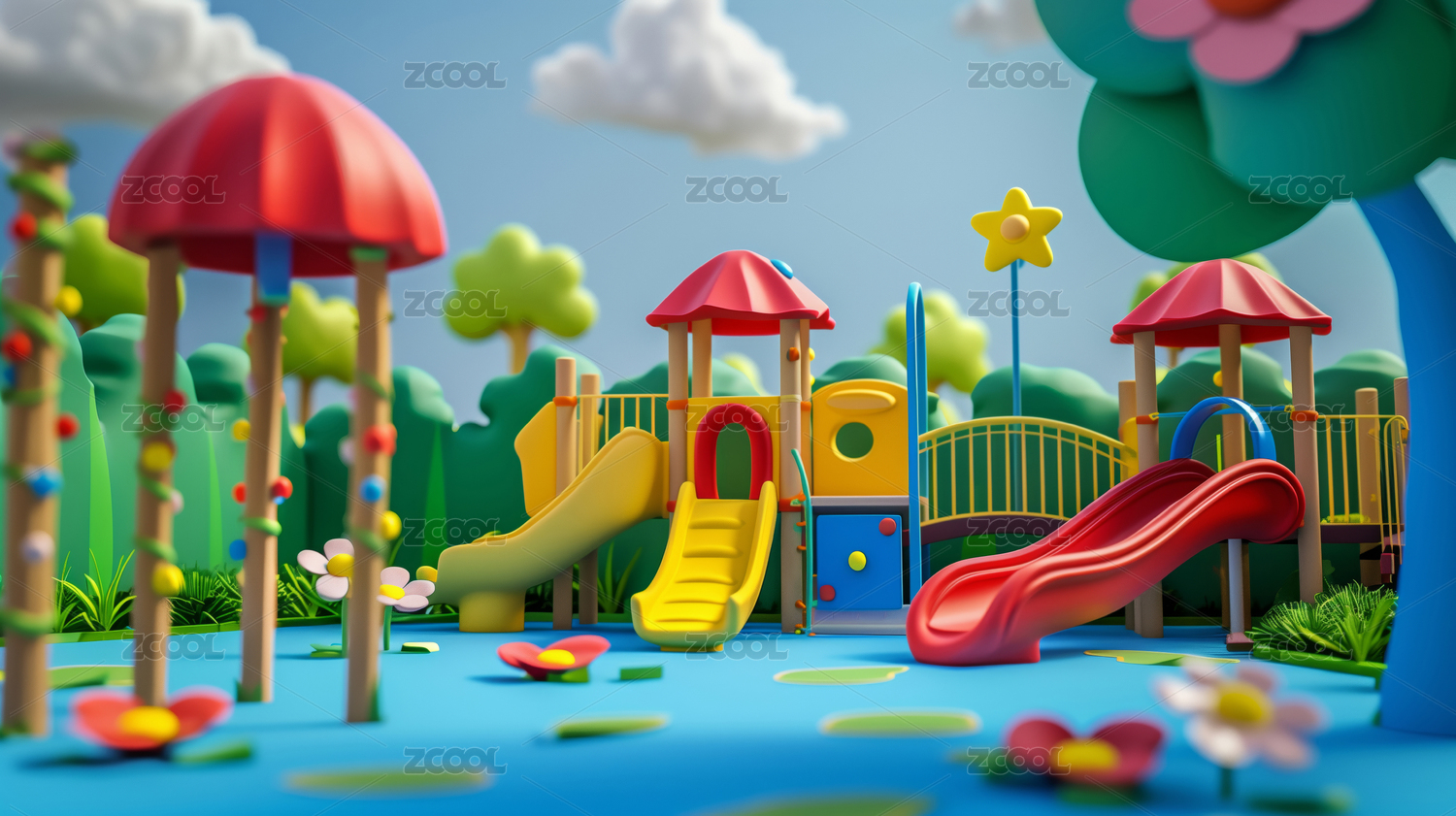 六一儿童节亲子乐园儿童游乐场童年3D插画