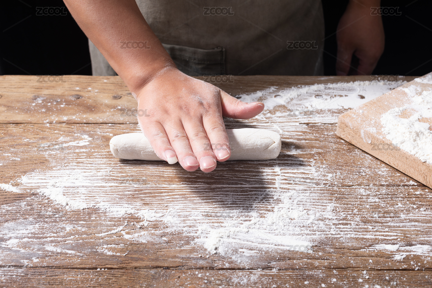 中餐厨房里一位厨师在用擀面杖制作包子皮