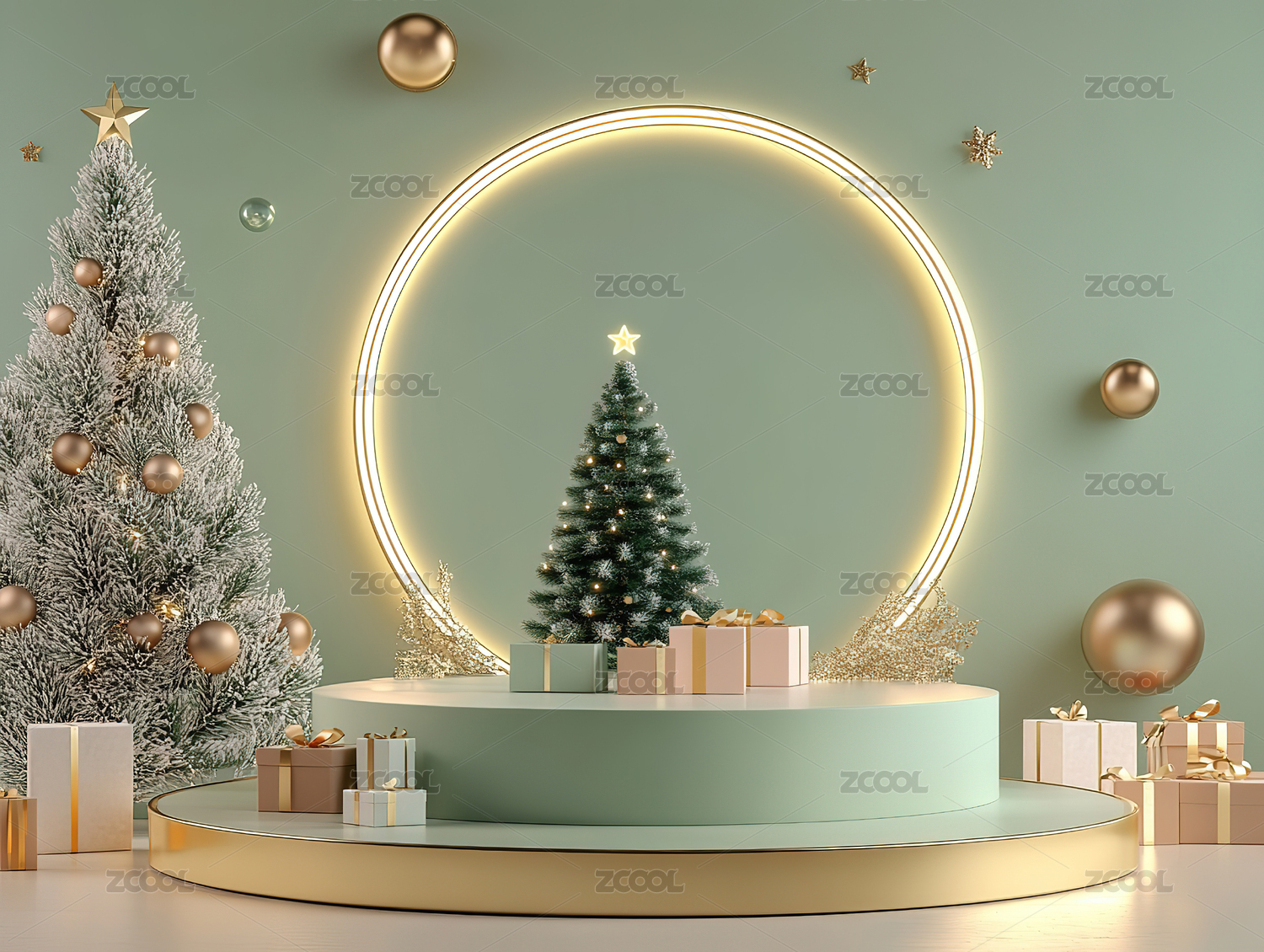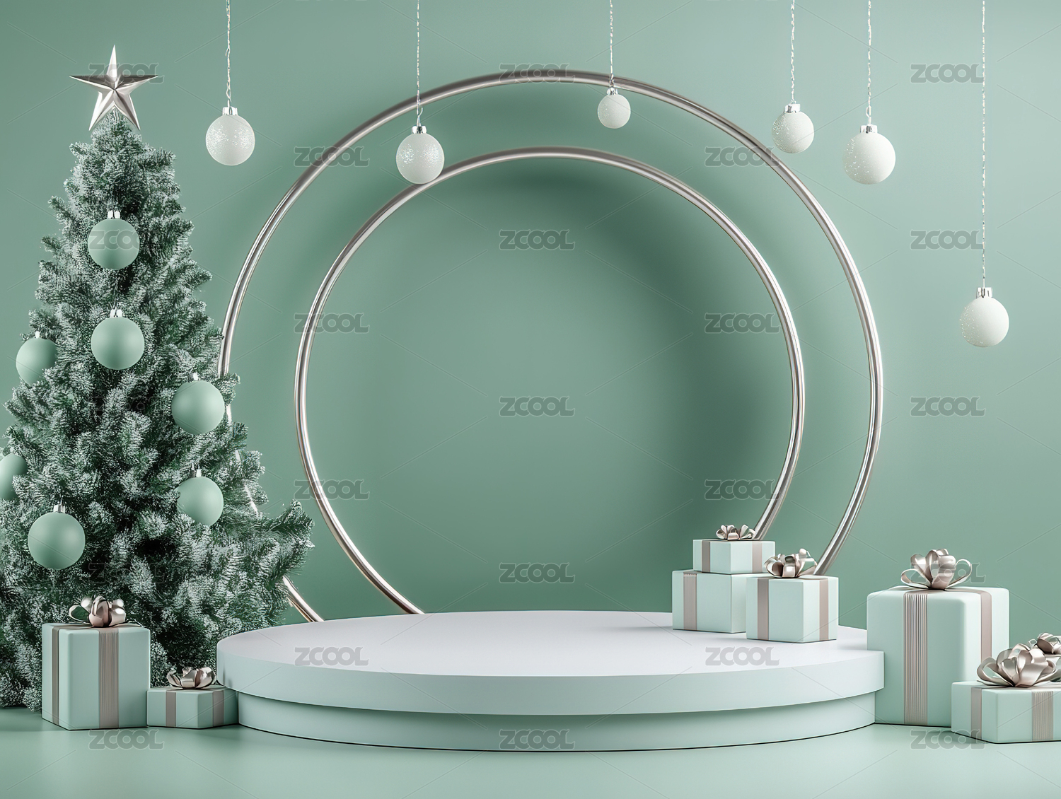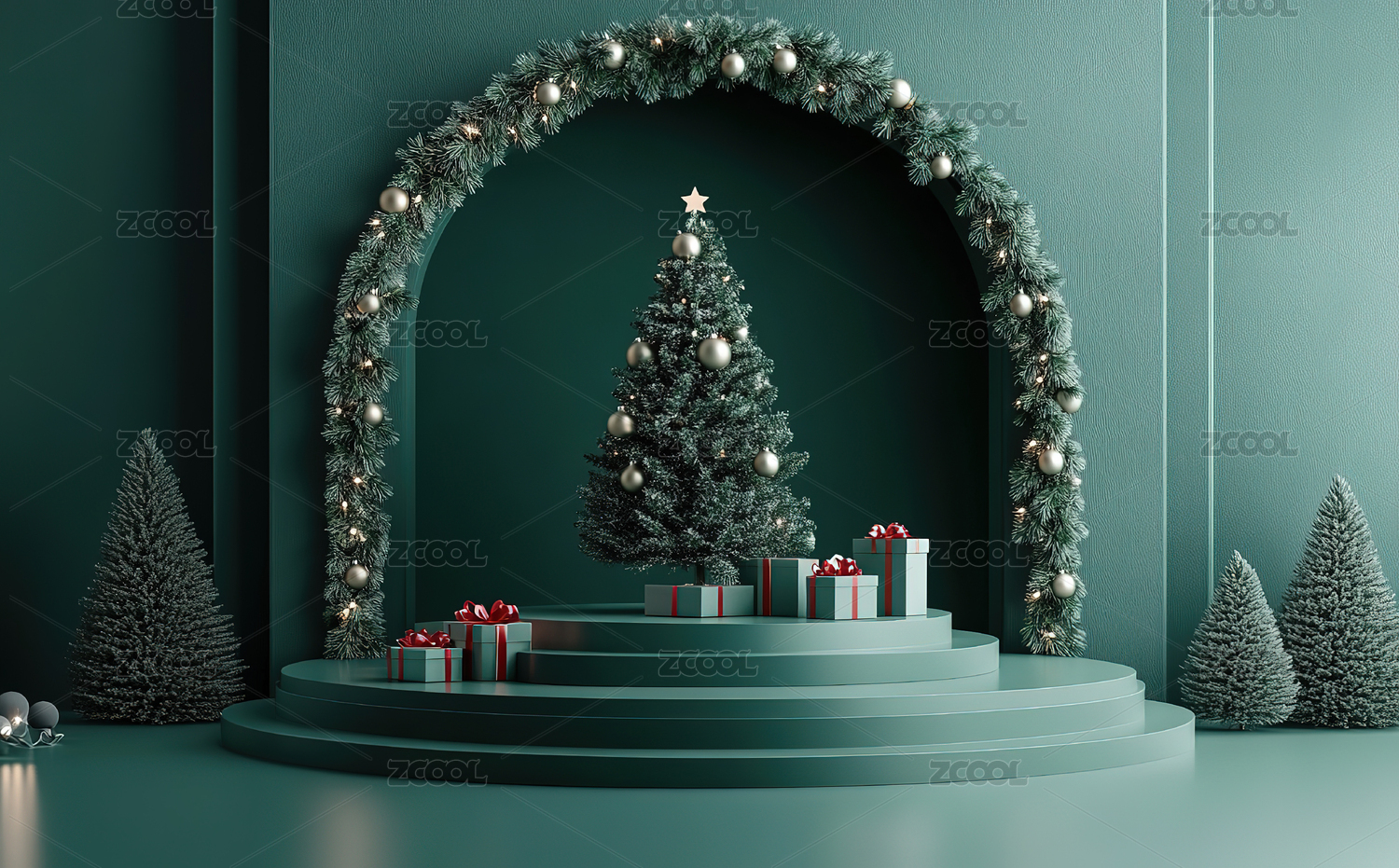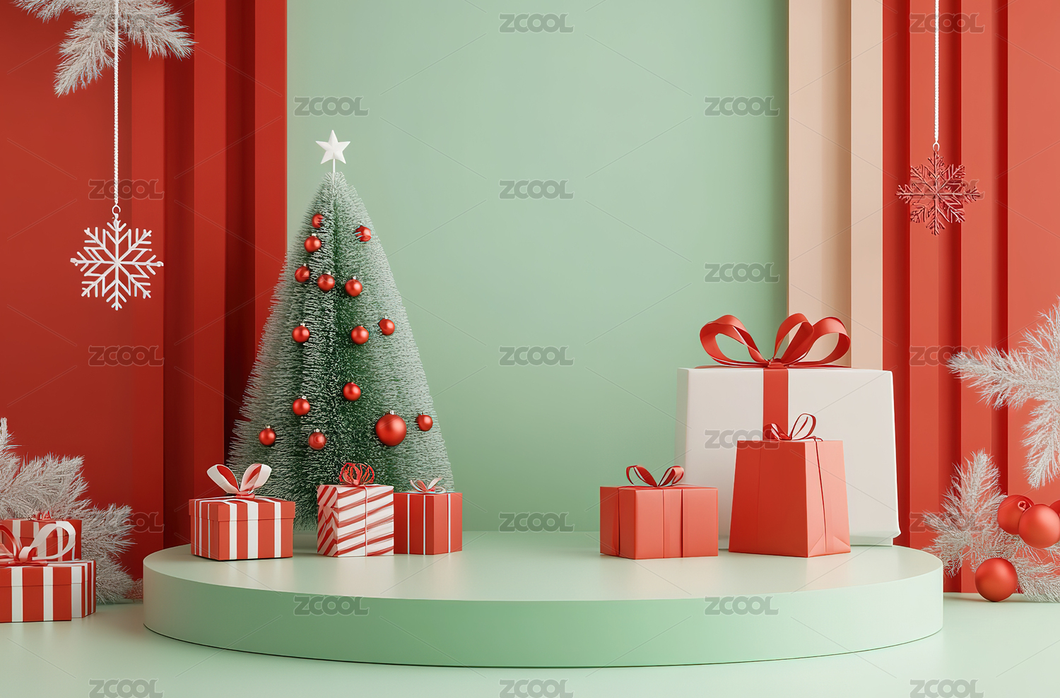 绿色系圣诞节产品展示台