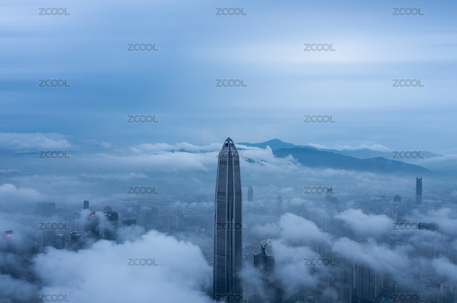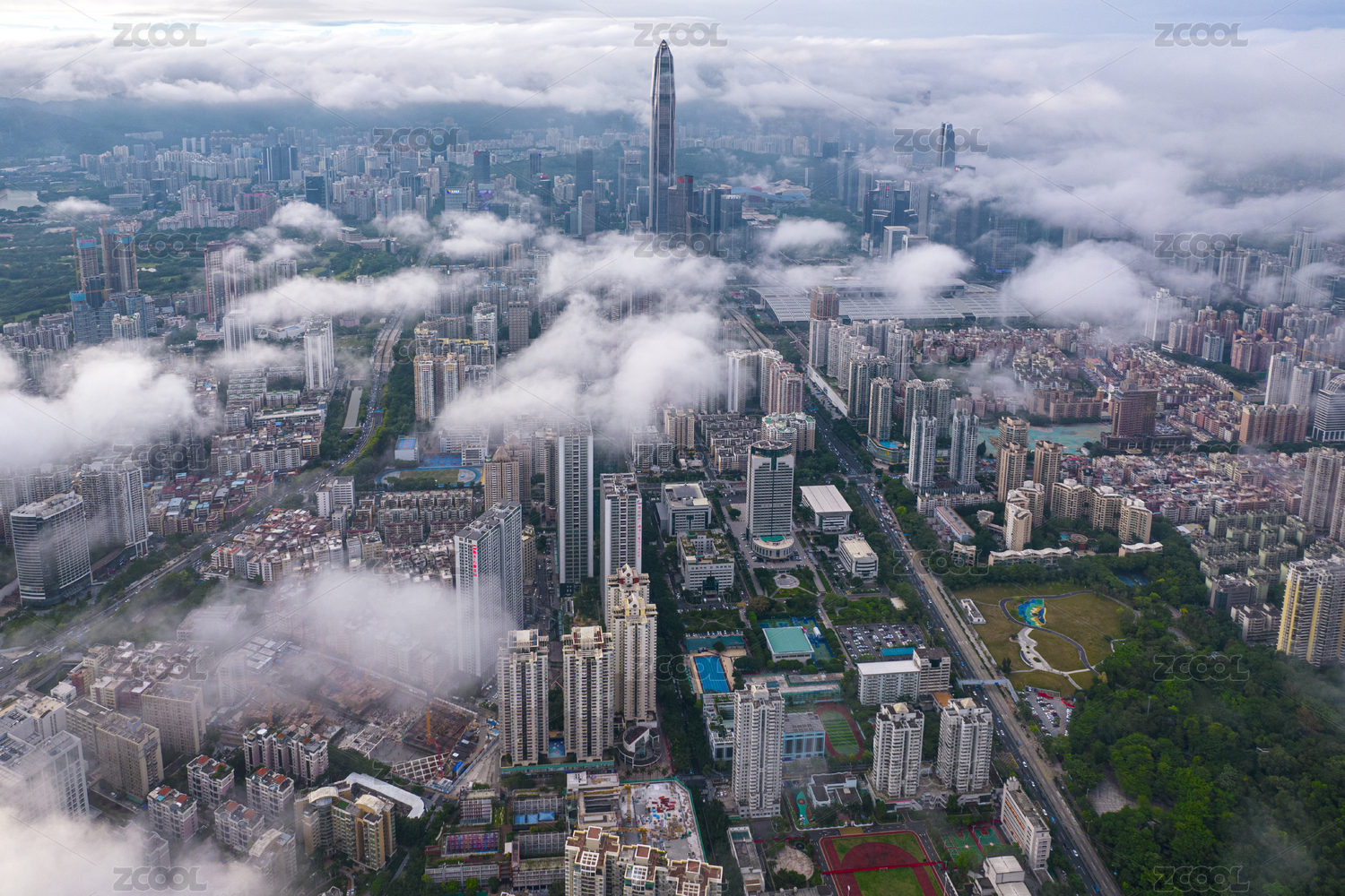 深圳,建筑,城市,云海,地标,航拍,白色,阴天