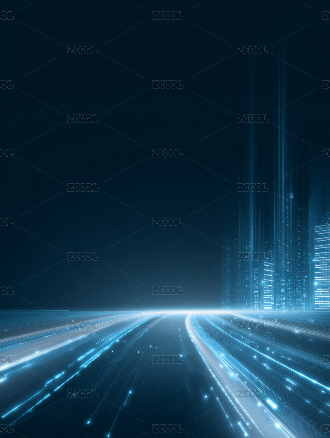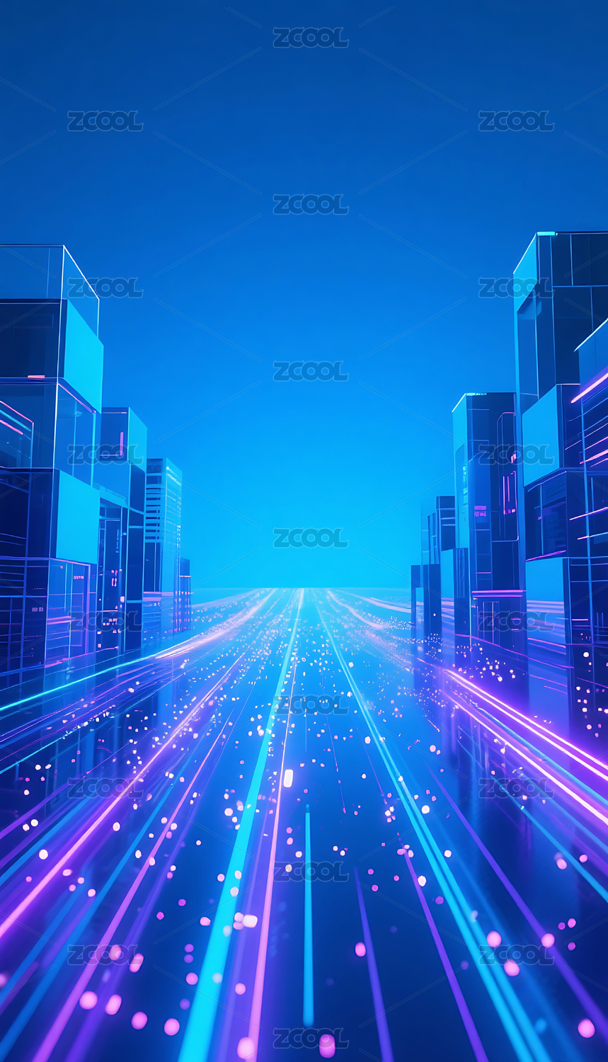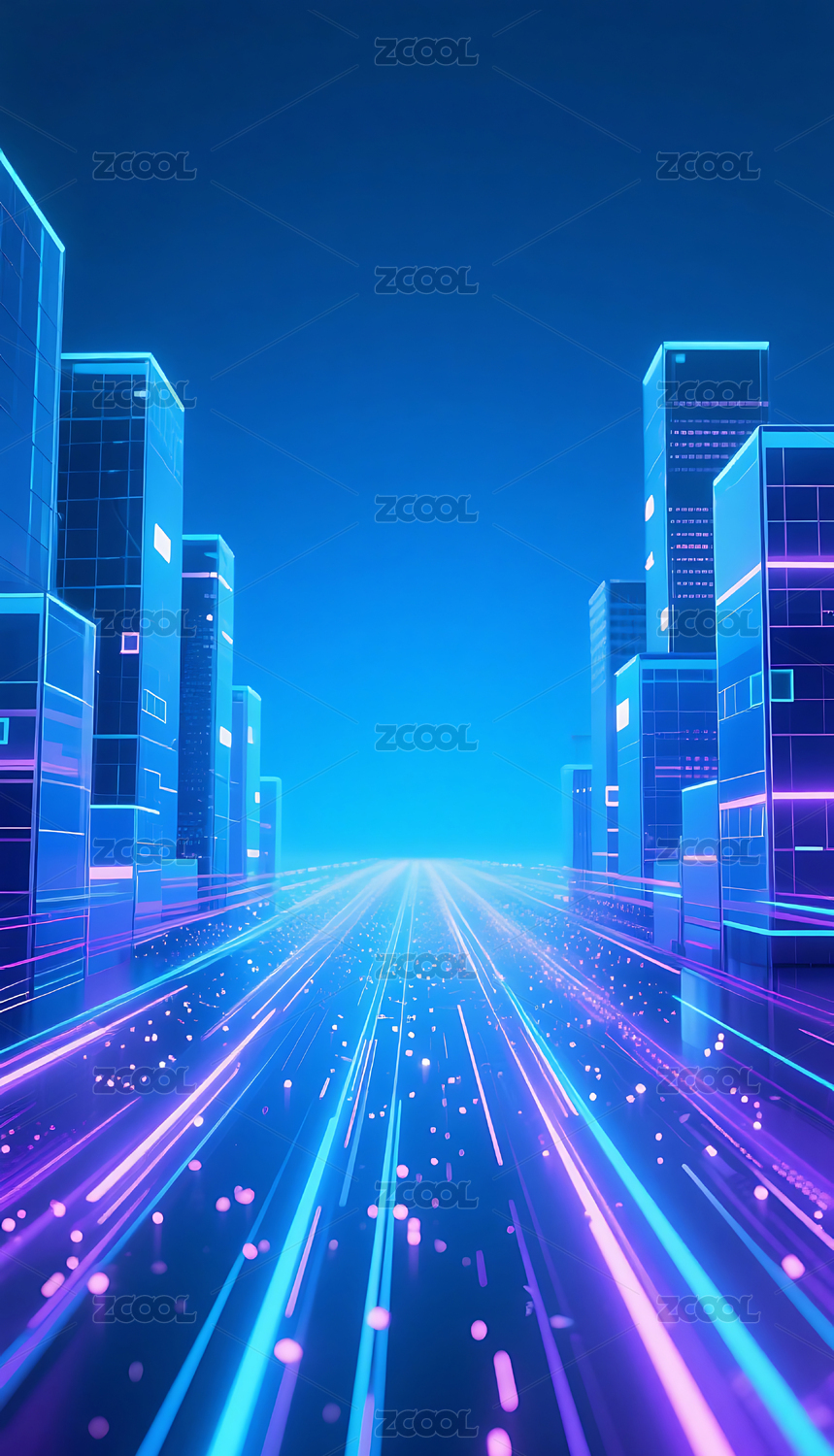 蓝紫色渐变科技城光轨背景