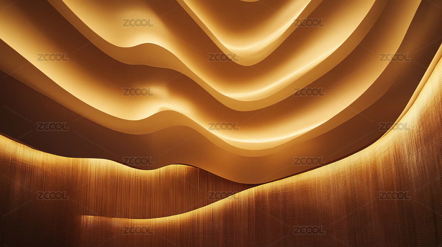 墙壁上的波浪造型搭配光线艺术效果