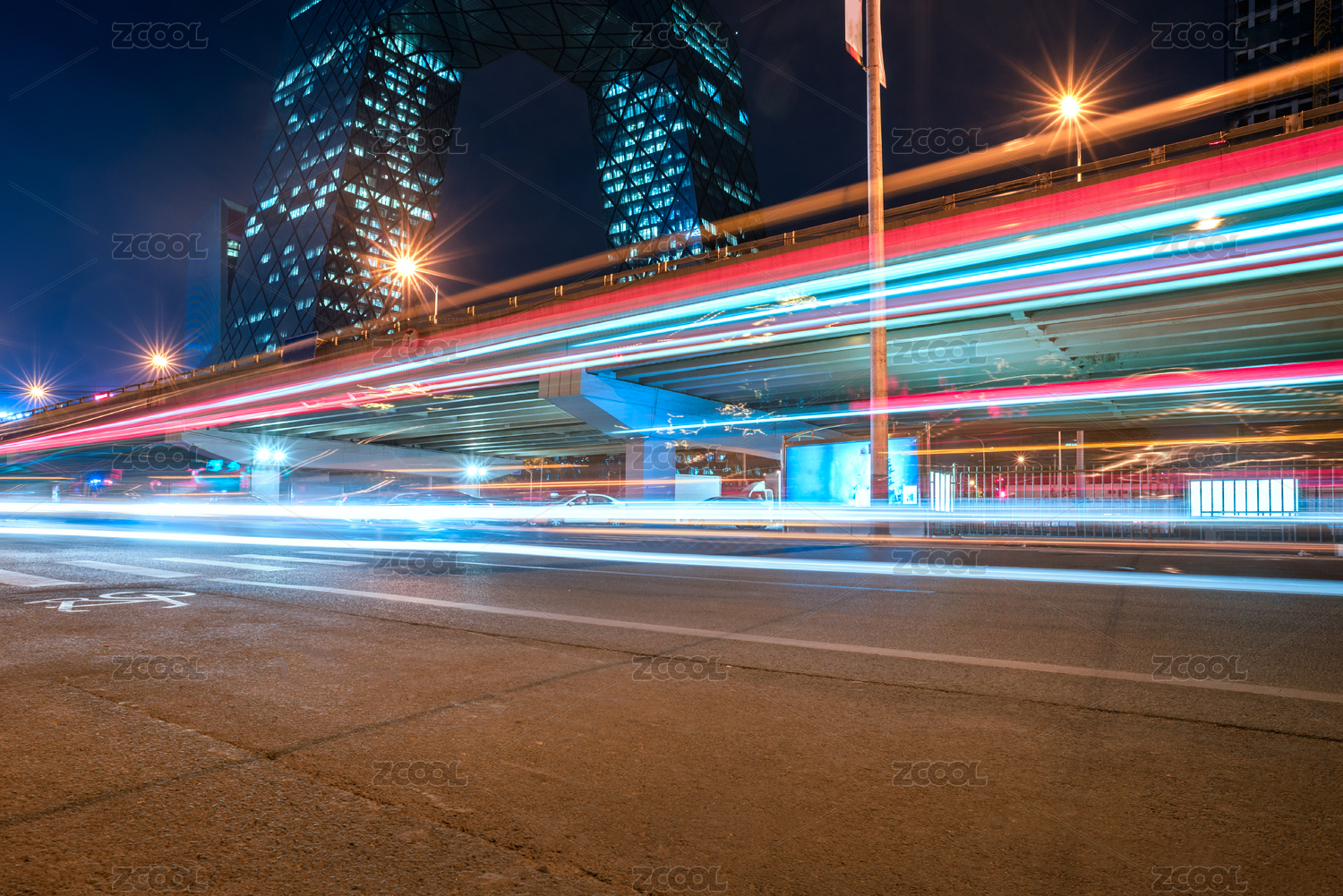 晚上空市中心的街道路口,在中国上海拍摄的。
