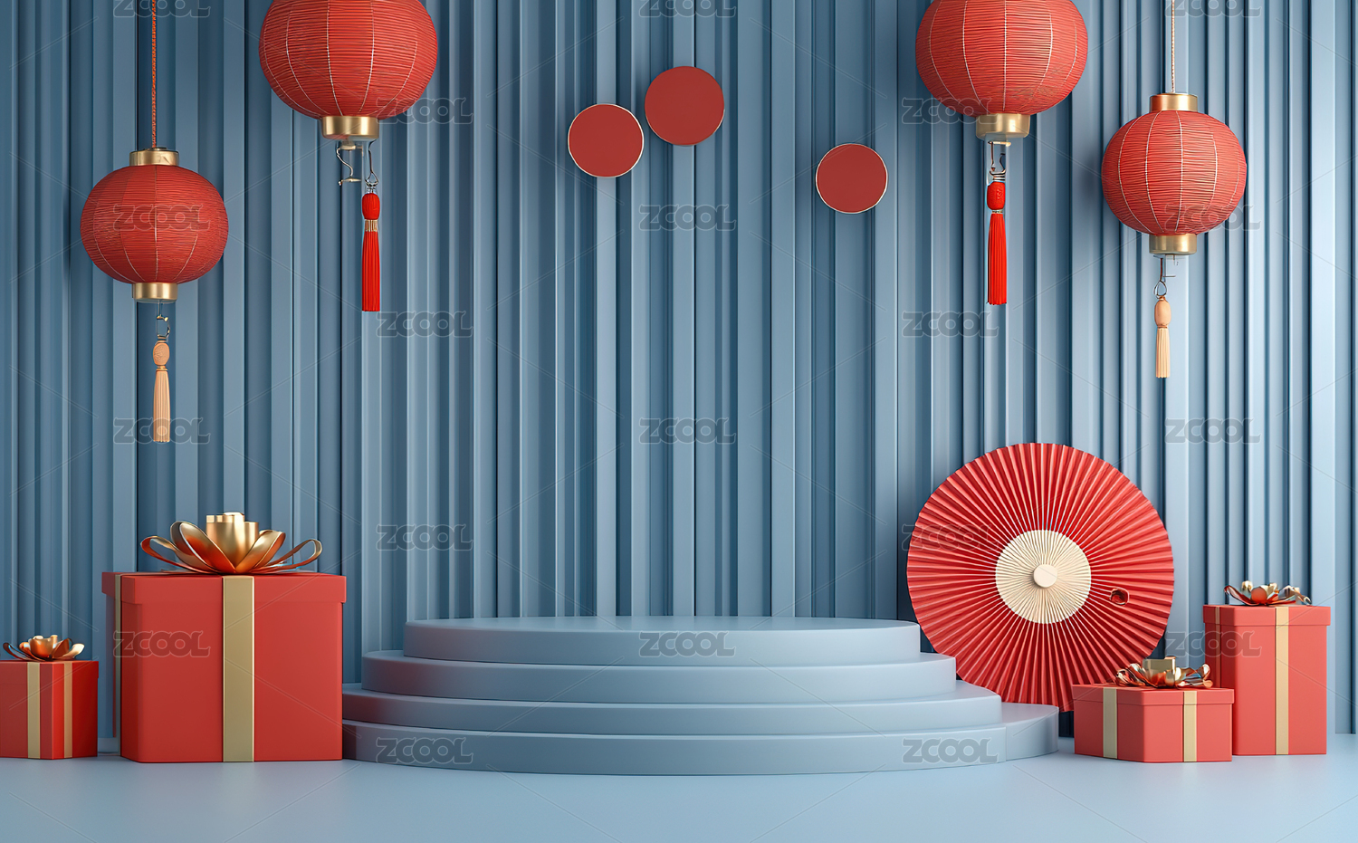 红色背景下的传统灯笼