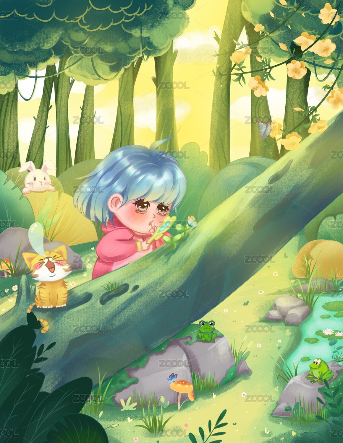 插画,海报,壁纸,HEYYTGF2020,荷叶,女孩,夏天,夏至,水珠,绿色