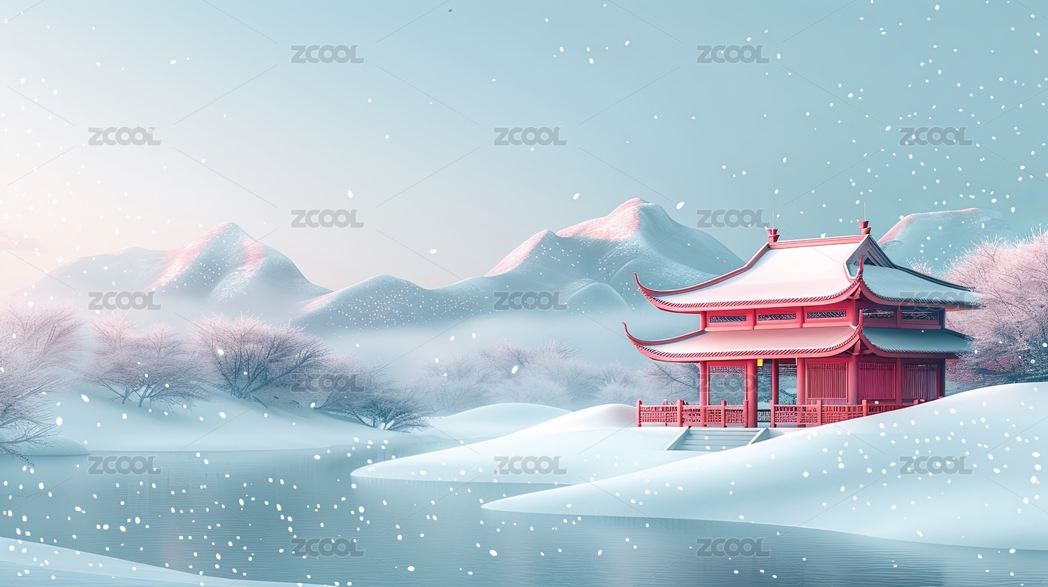 中国风,宫殿,古建筑,梅花,冬天,雪景,下雪,大雪,山脉,山谷
