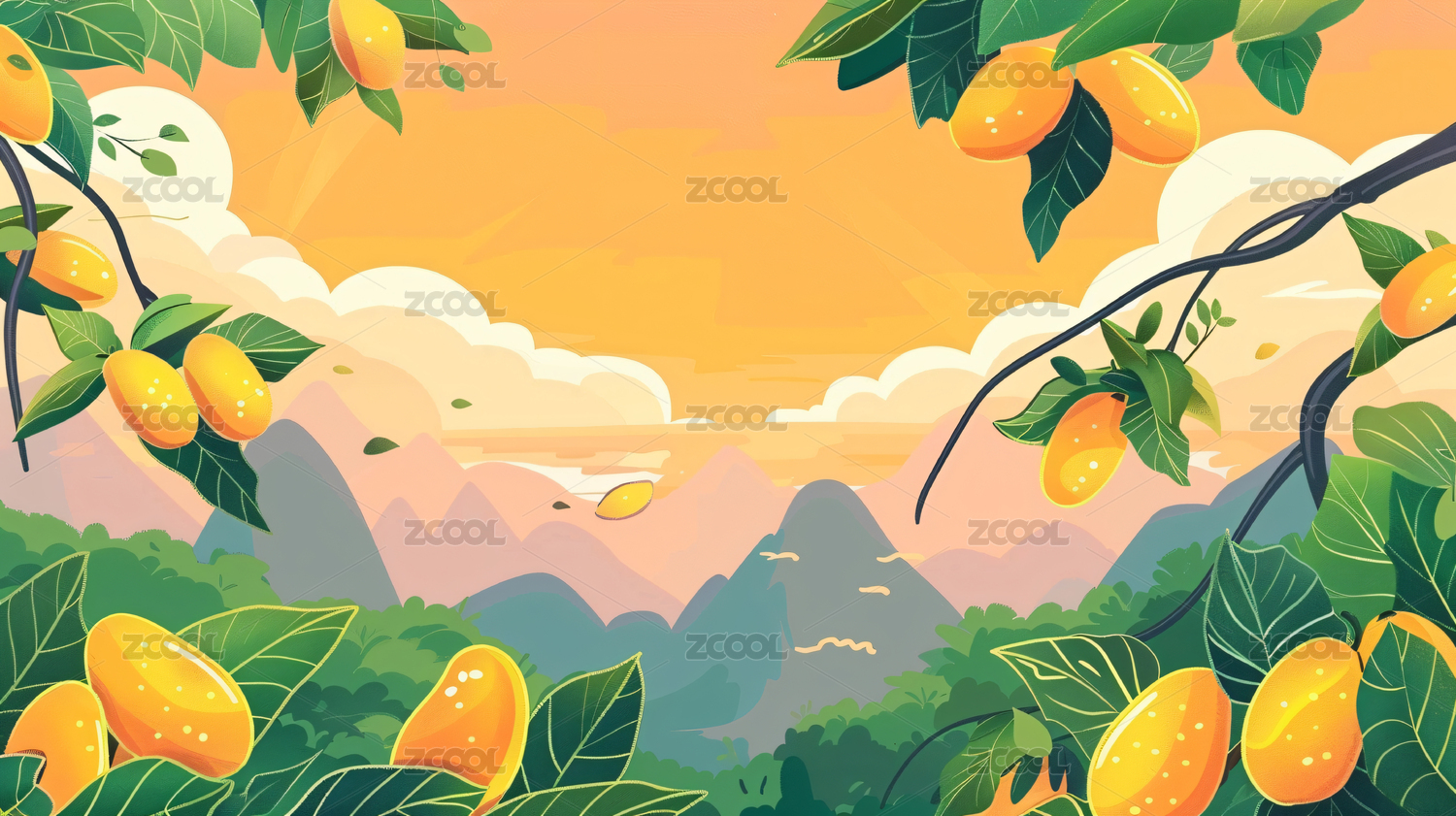AIGCFG,国潮风,插画,绘画插图,芒果,多村,农业,户外,旅行,旅游