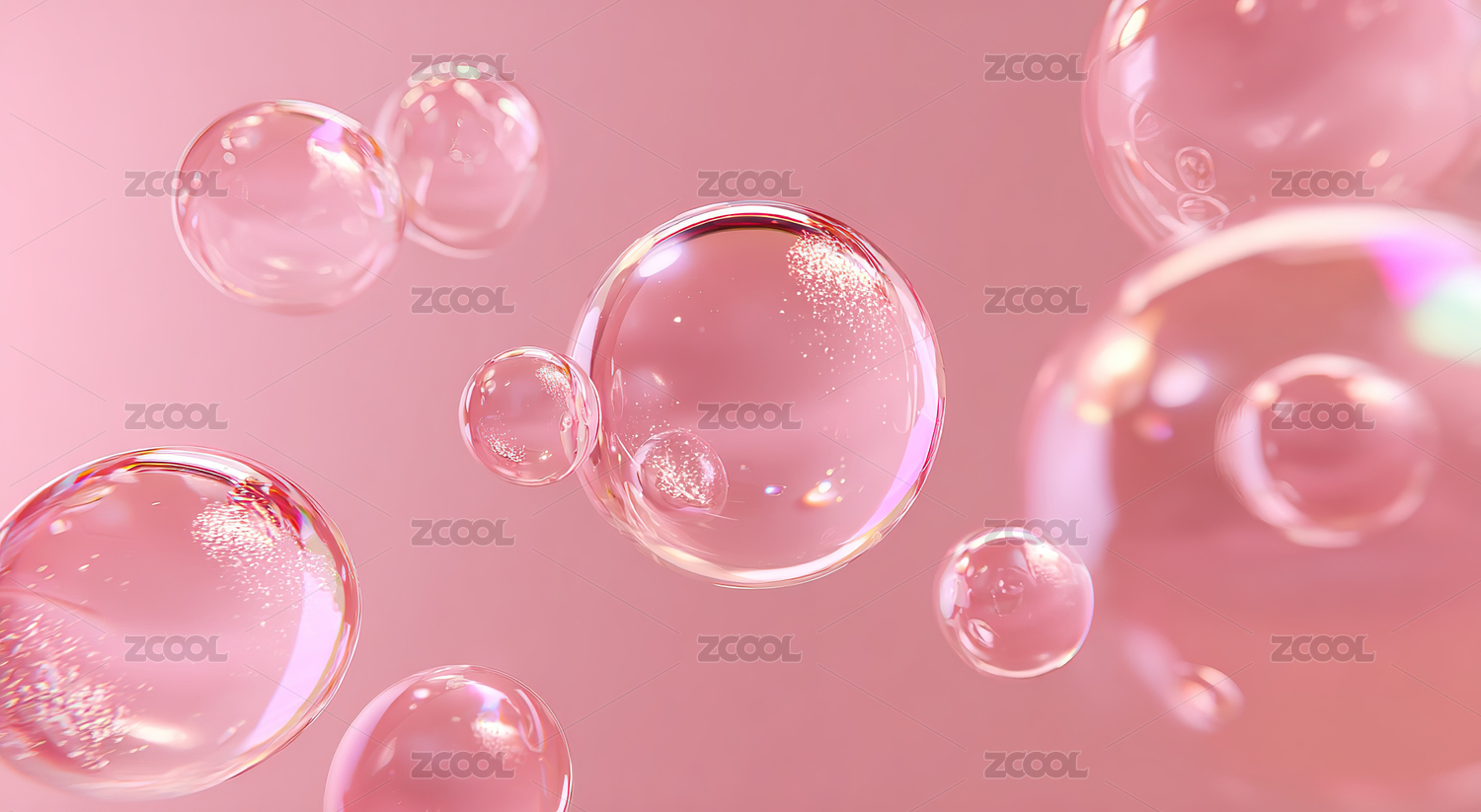 透明气泡与粉色球体的梦幻背景