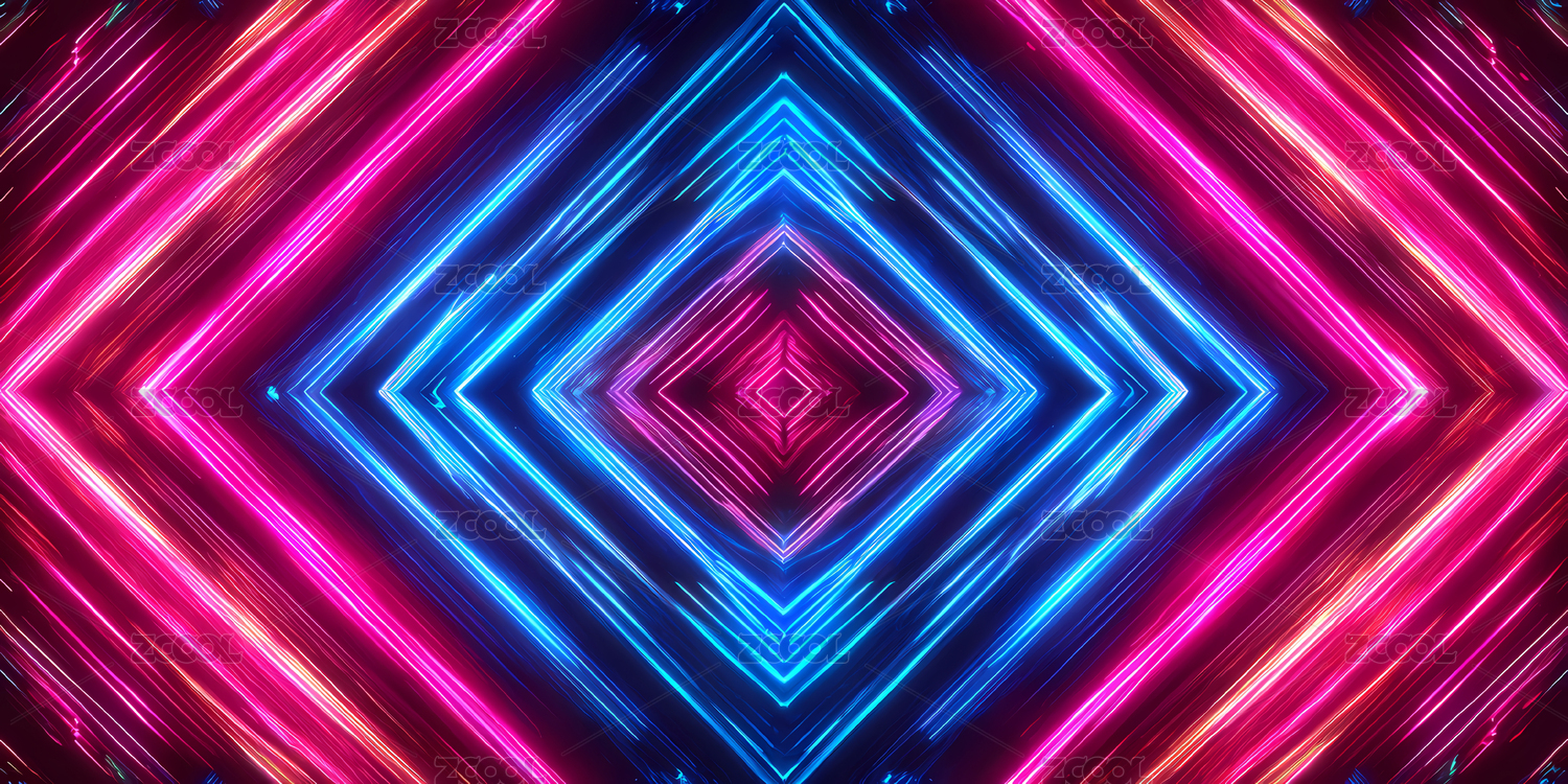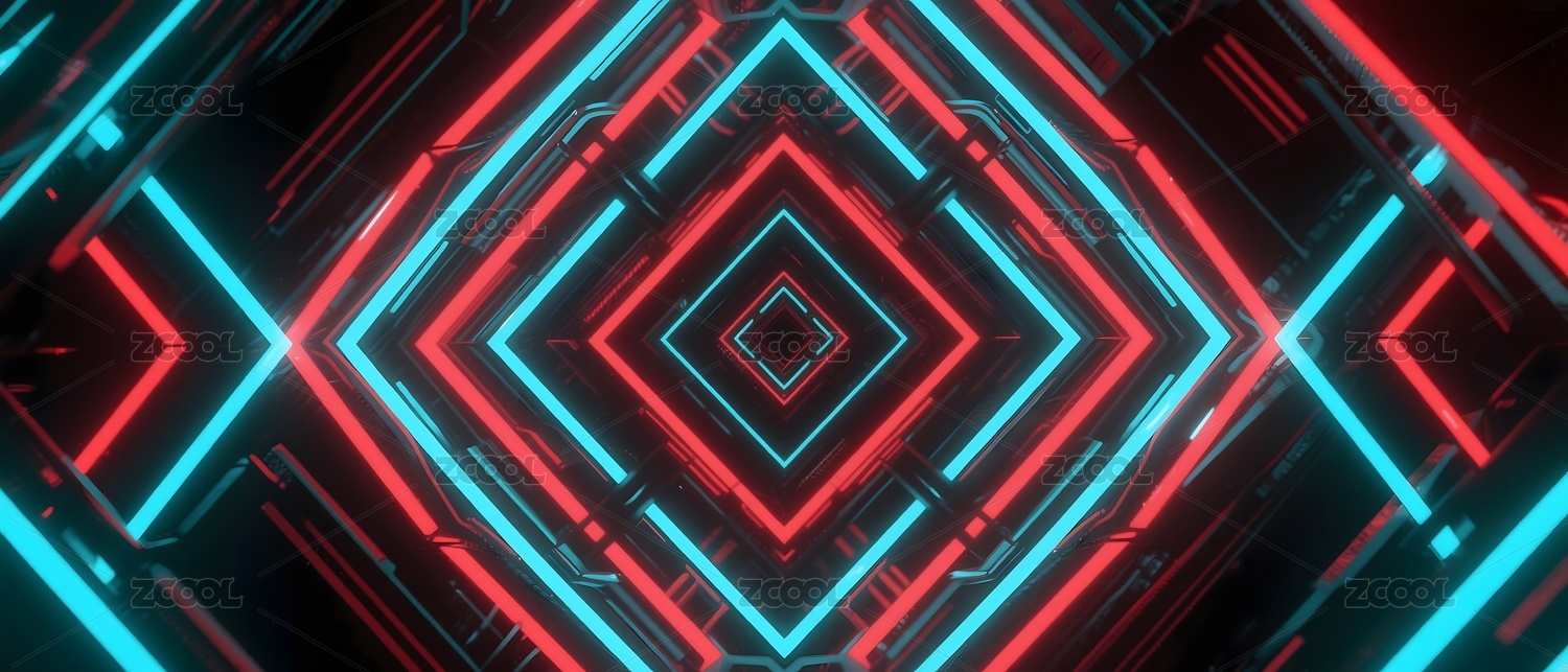 红蓝色霓虹灯环绕构成的发光通道隧道