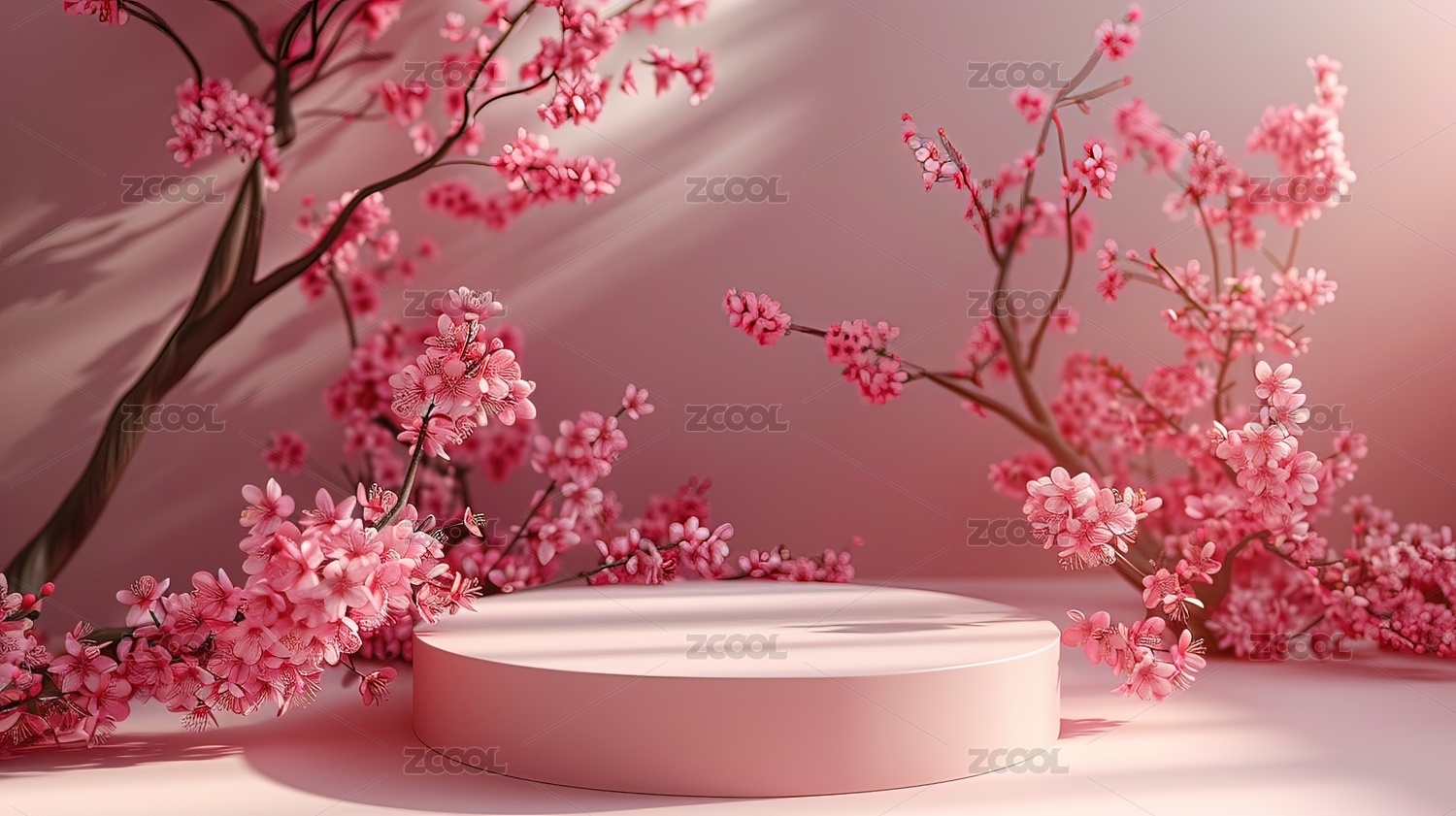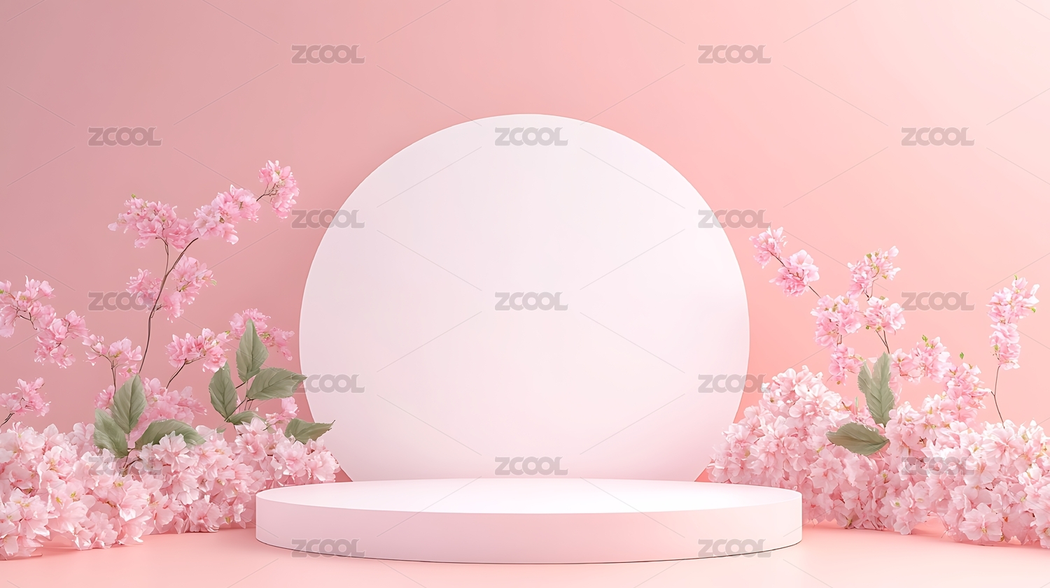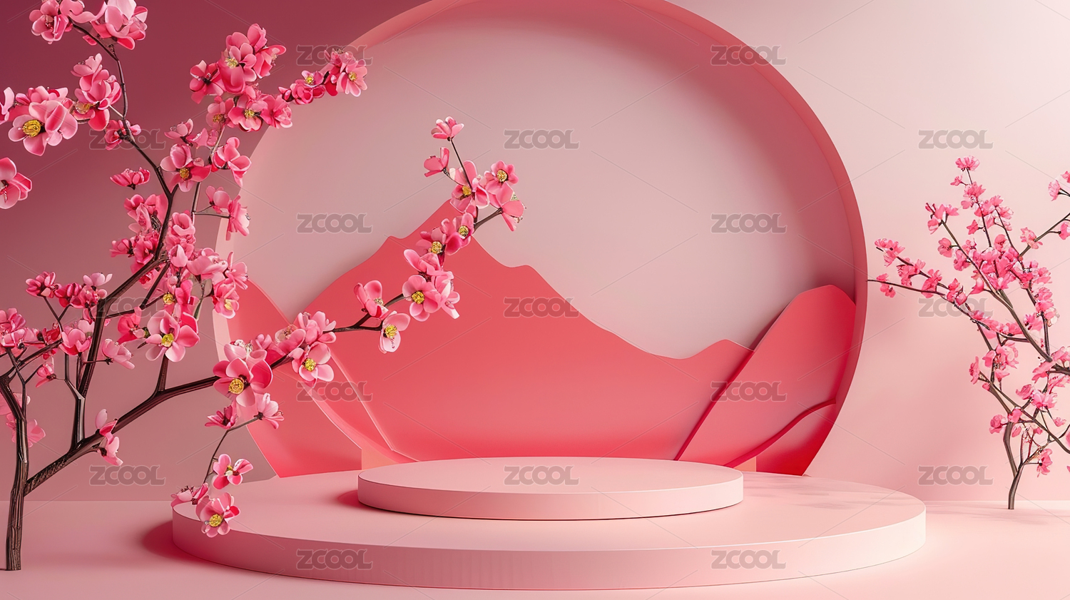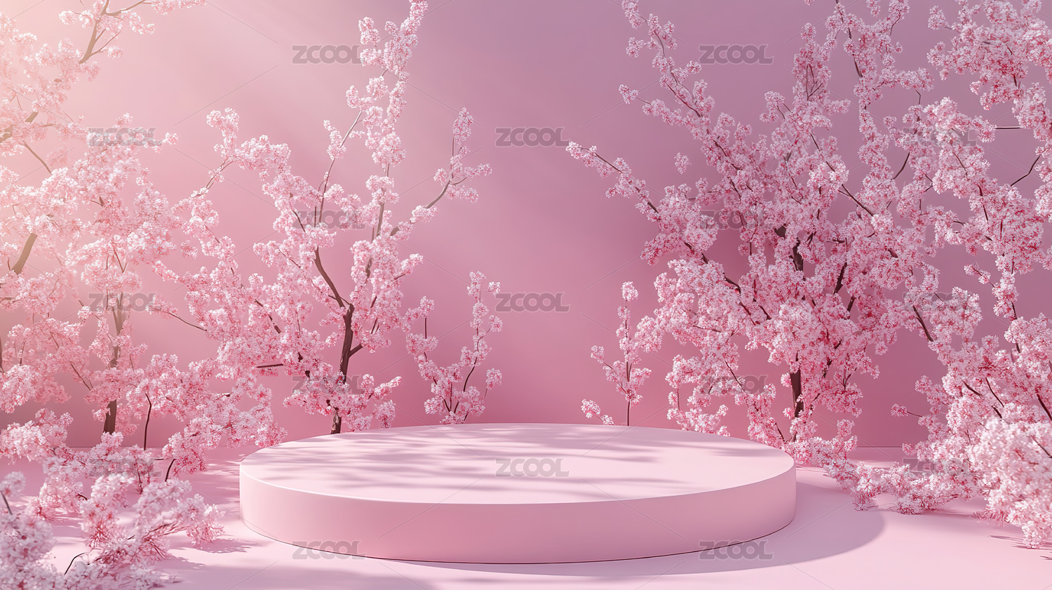 三维, 立体, 插画, 背景, 壁纸, 展台, 创意, 光, 空间, 粉色
