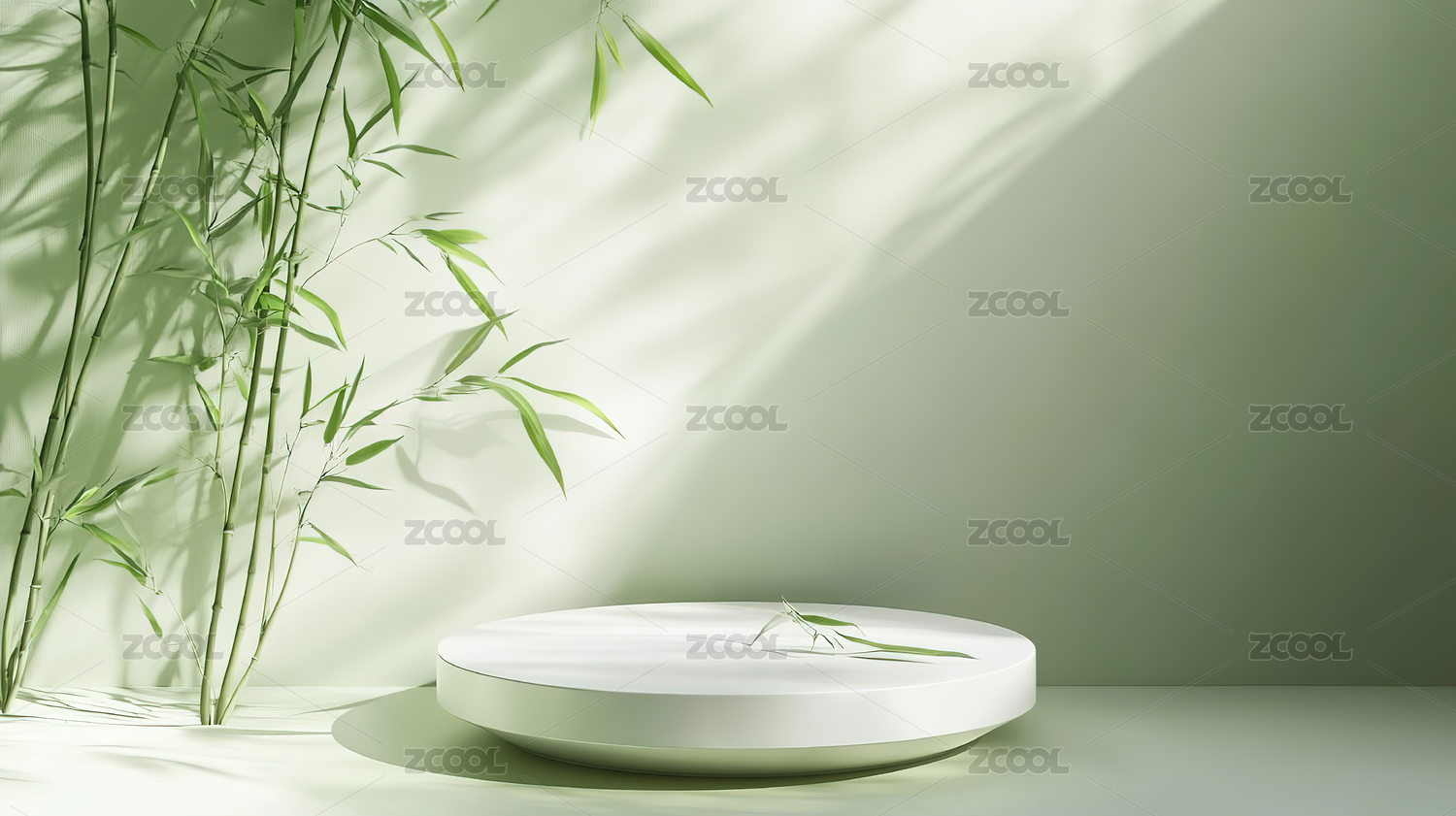 禅意风白色高台竹叶影3D渲染插画