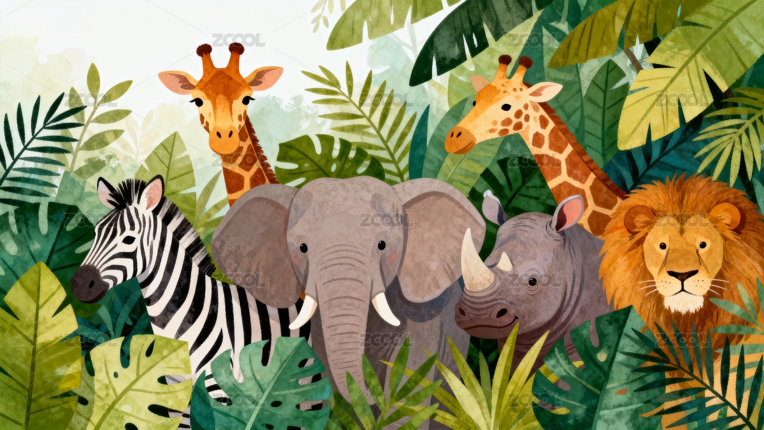 雨林,探险,奇妙,仓鼠,兔子,猴子,孔雀,森林,鳄鱼,蛇