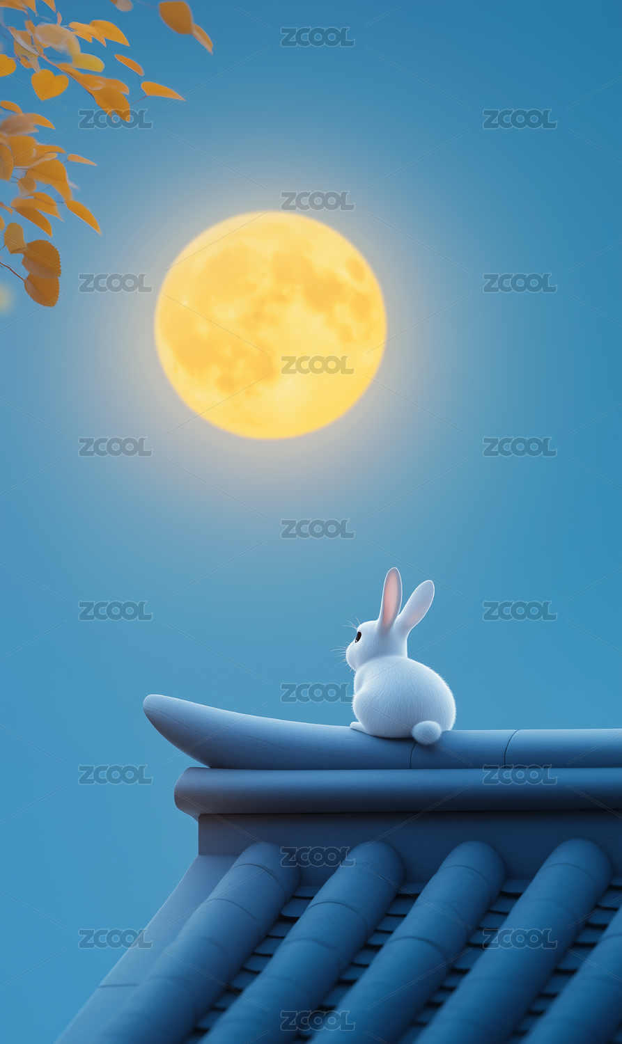 中秋节可爱国潮风玉兔传统节日赏月习俗插画