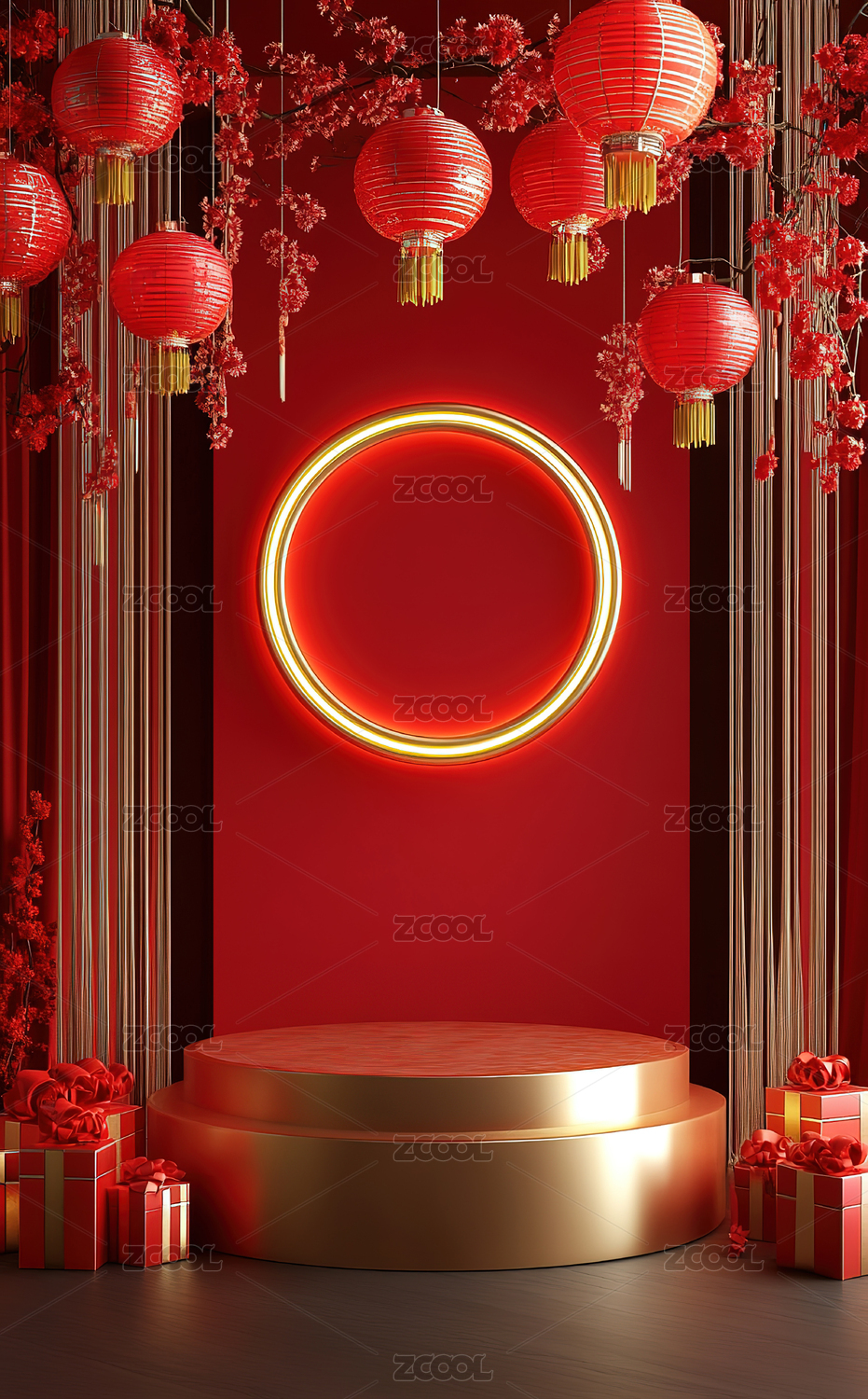 红色灯笼装饰的节日舞台场景