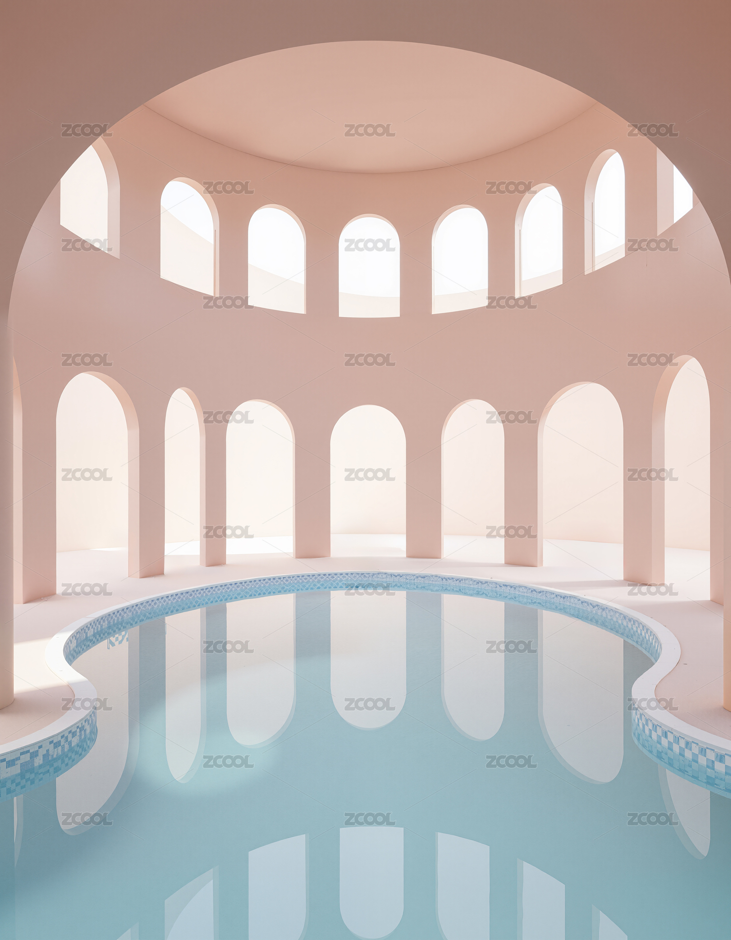 夏天游泳池度假村旅行放松高温解暑假期插画