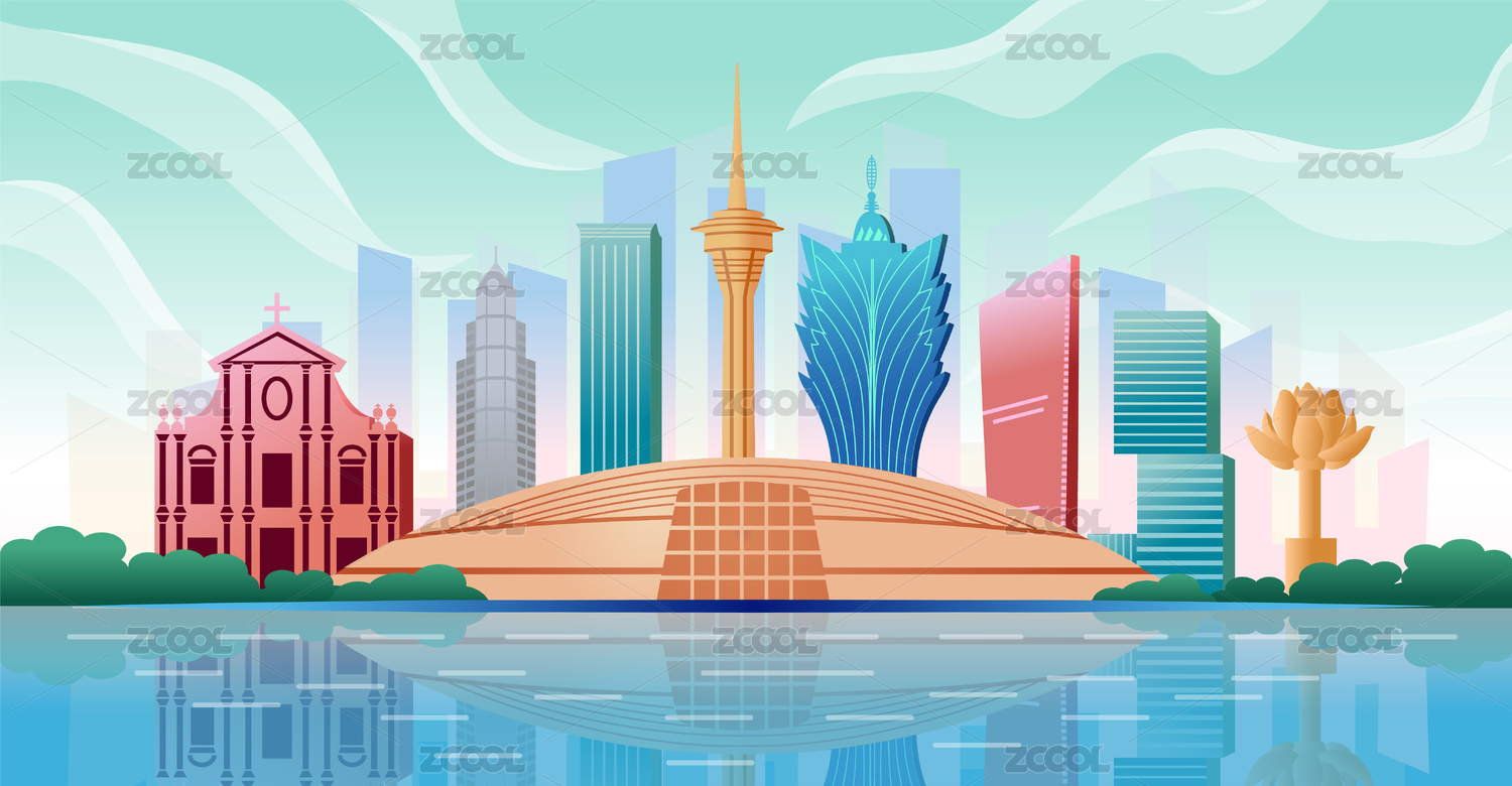 中国浙江绍兴市商务科技城市彩色矢量插画