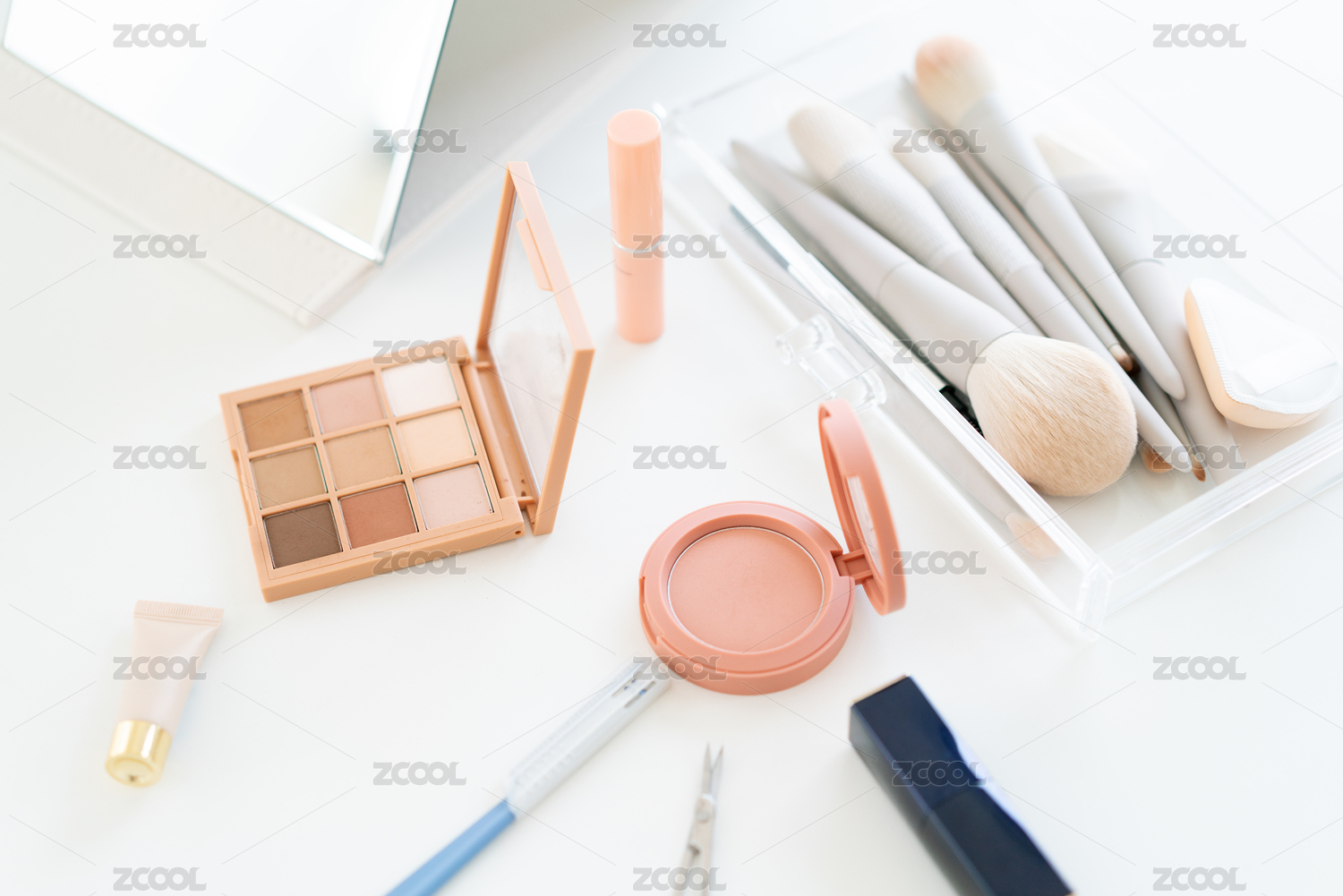 白色背景摆放的美妆化妆品