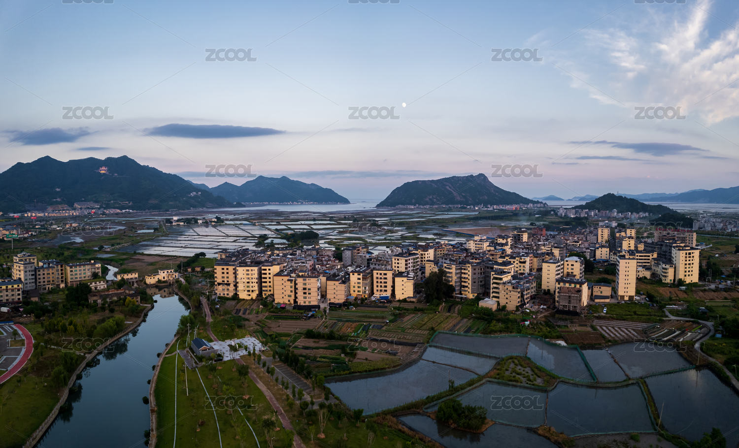 福建宁德霞浦滩涂日落自然风光城市建筑全景