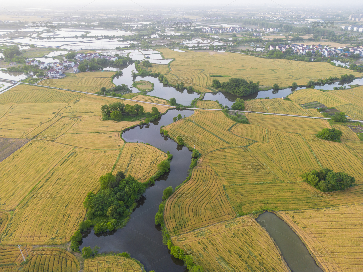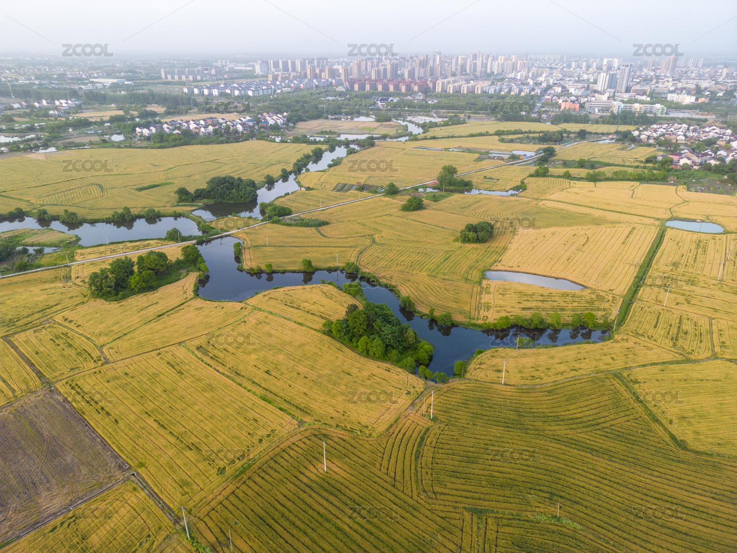 航拍,航拍视角,高视角,金黄,黄色,夏天,初夏,夏日,夏季,麦田