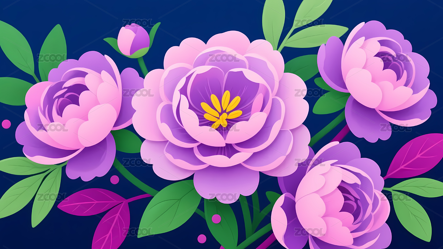 两朵绽放的牡丹花植物花卉中国风国潮插画