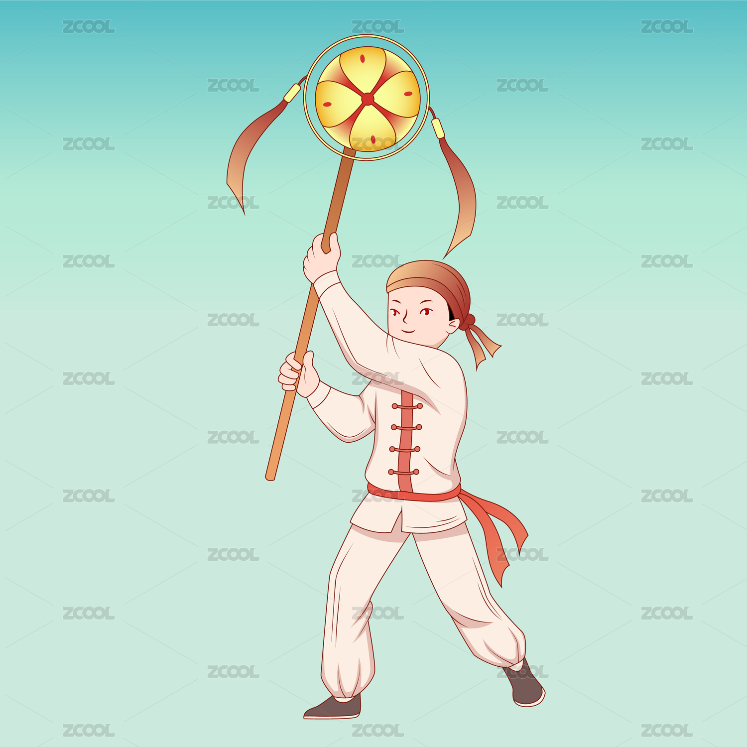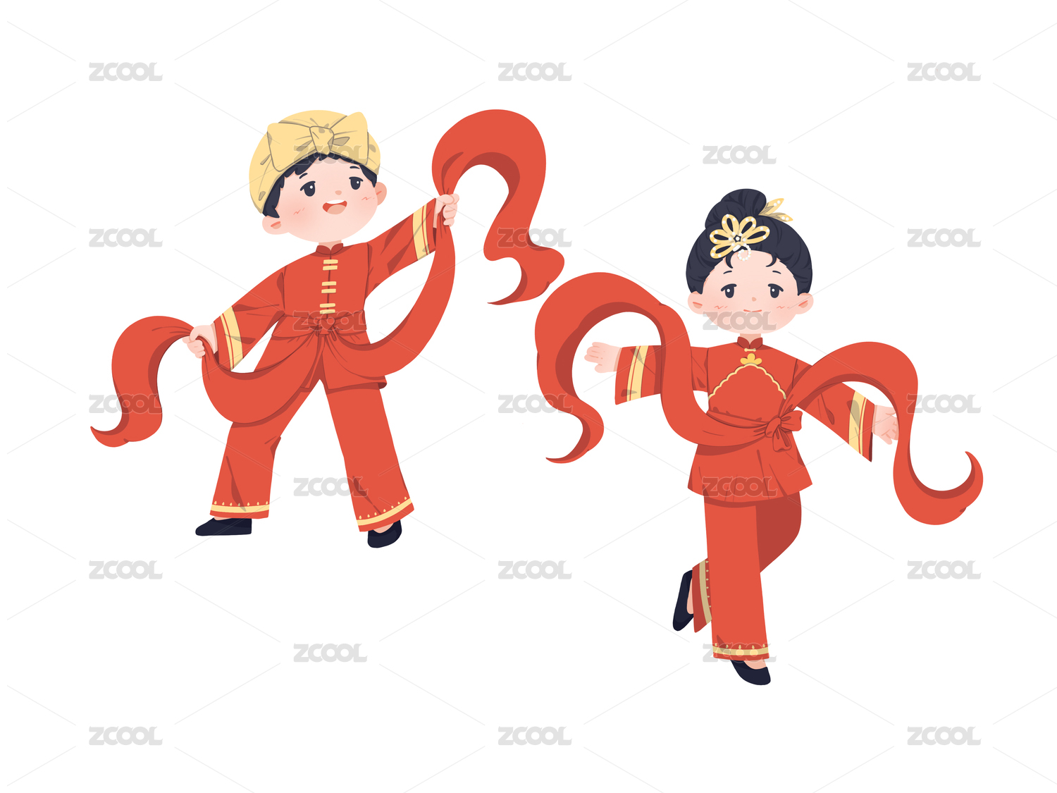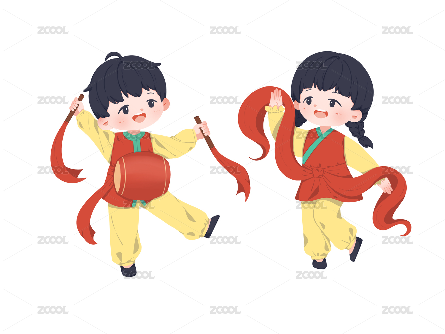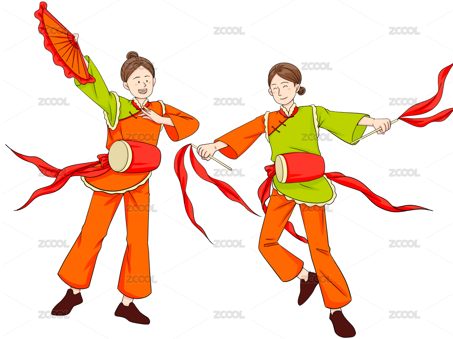 卡通,花灯节,传统,习俗,红色,扭秧歌,逛庙会 大团圆 新年 春节,国庆,腰鼓,元素