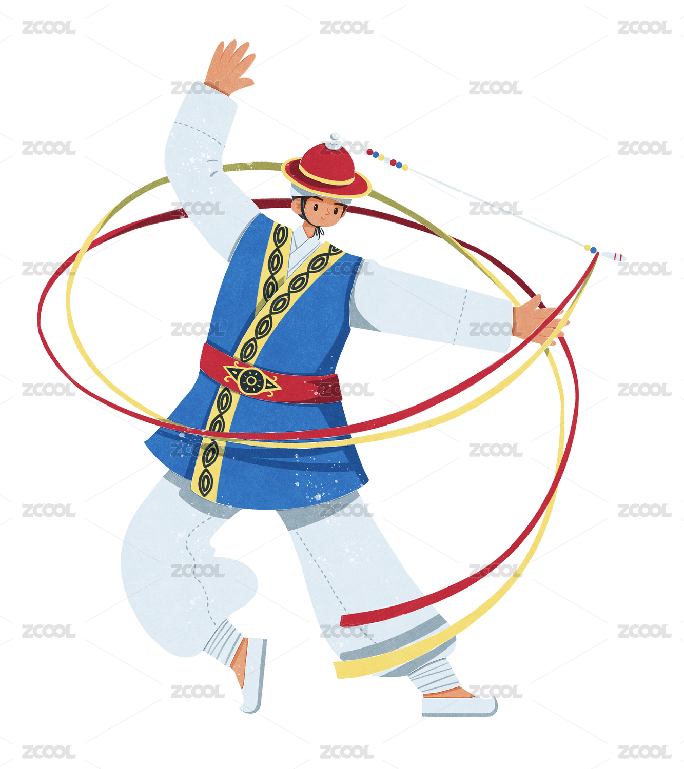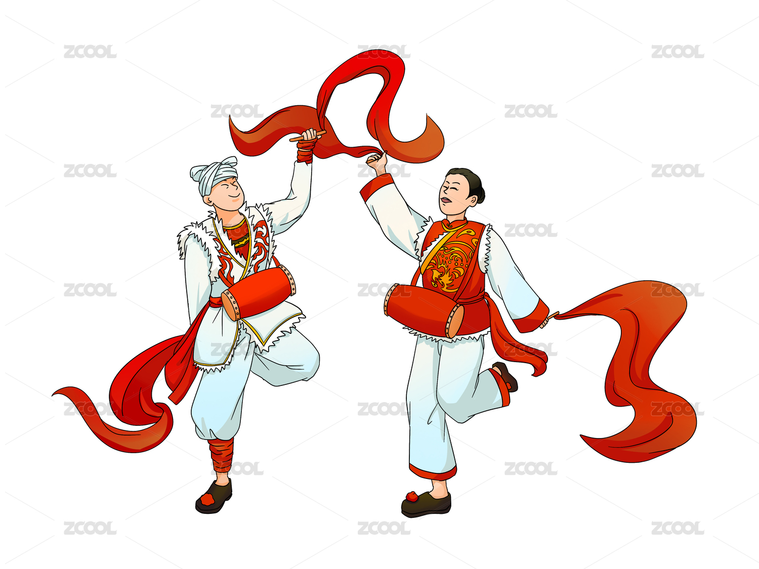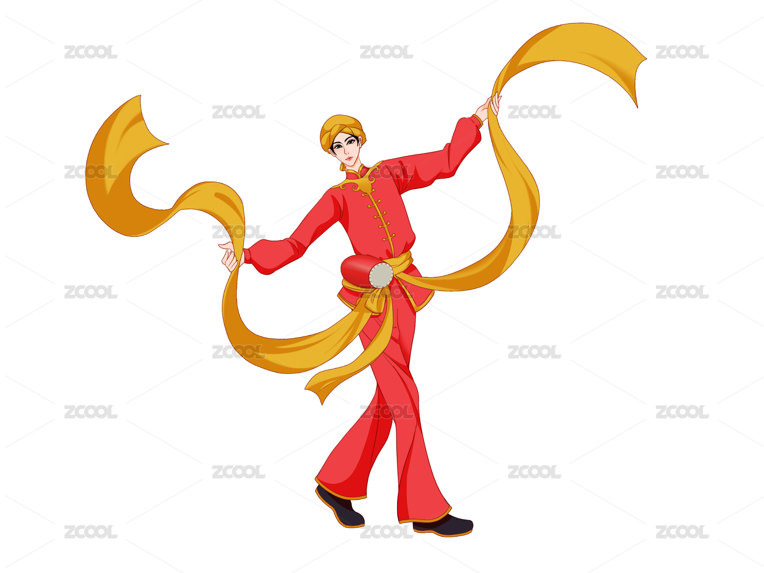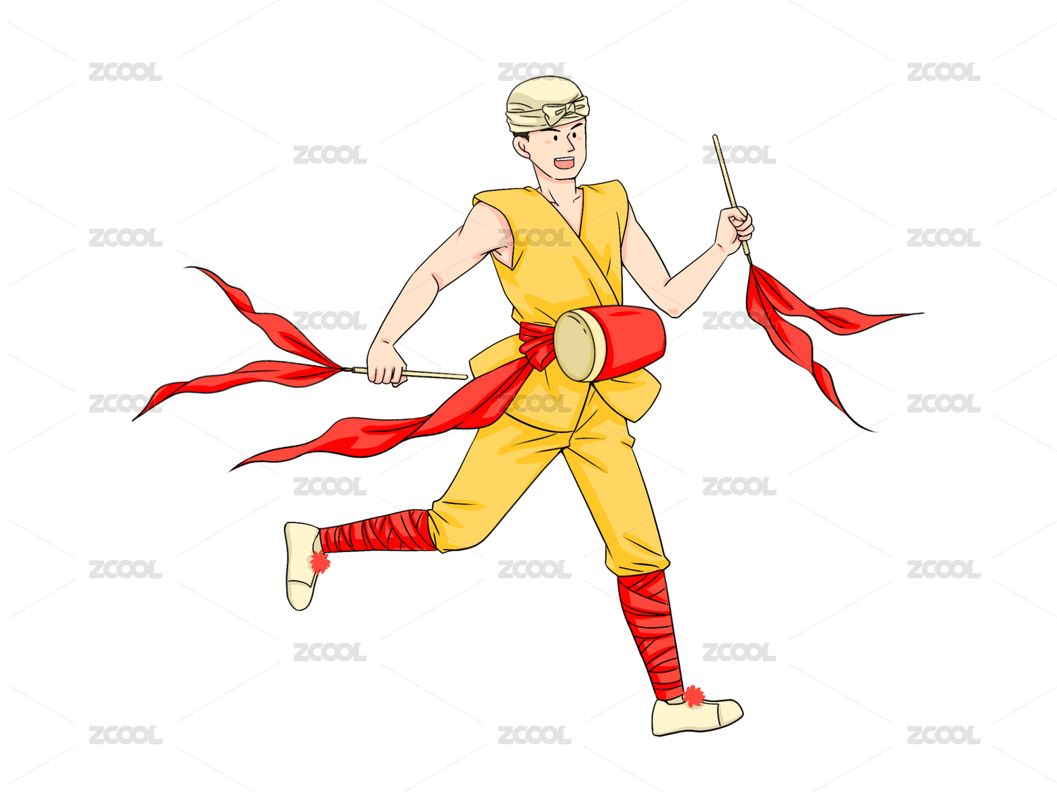 黄色民族风扭秧歌敲腰鼓男性头巾元素