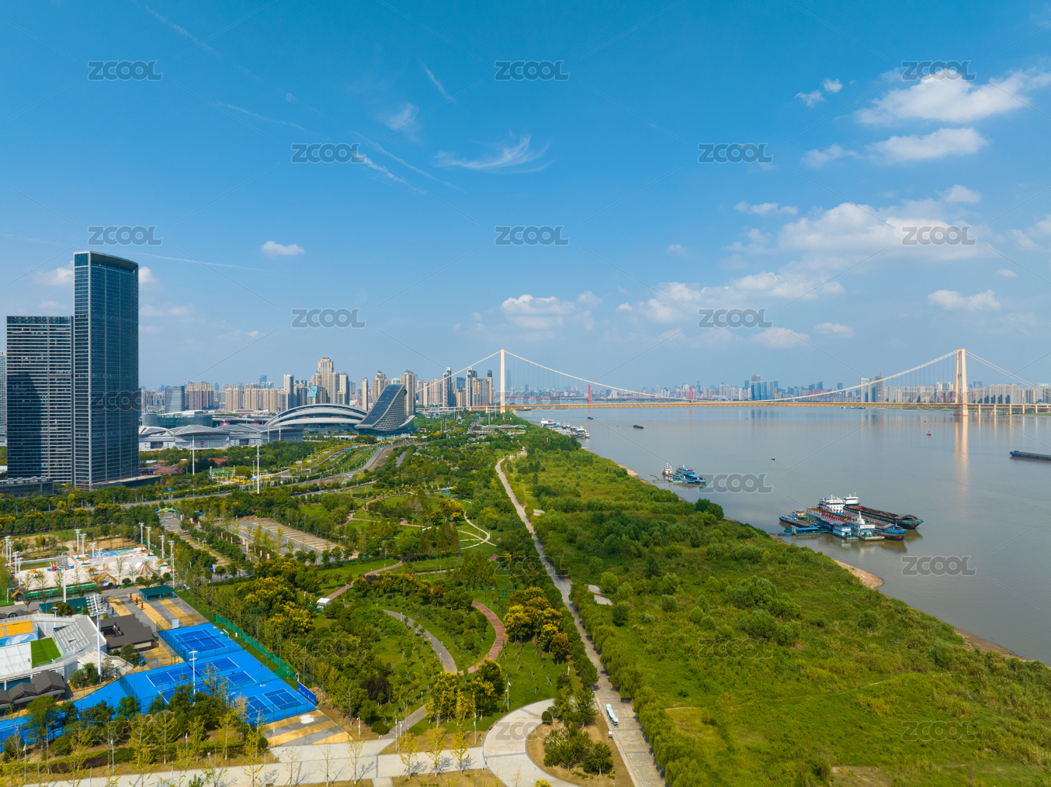 湖北武汉杨泗港大桥长江两岸城市天际线航拍