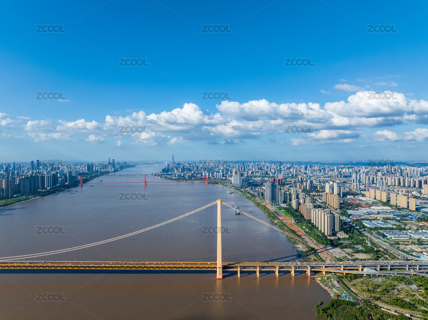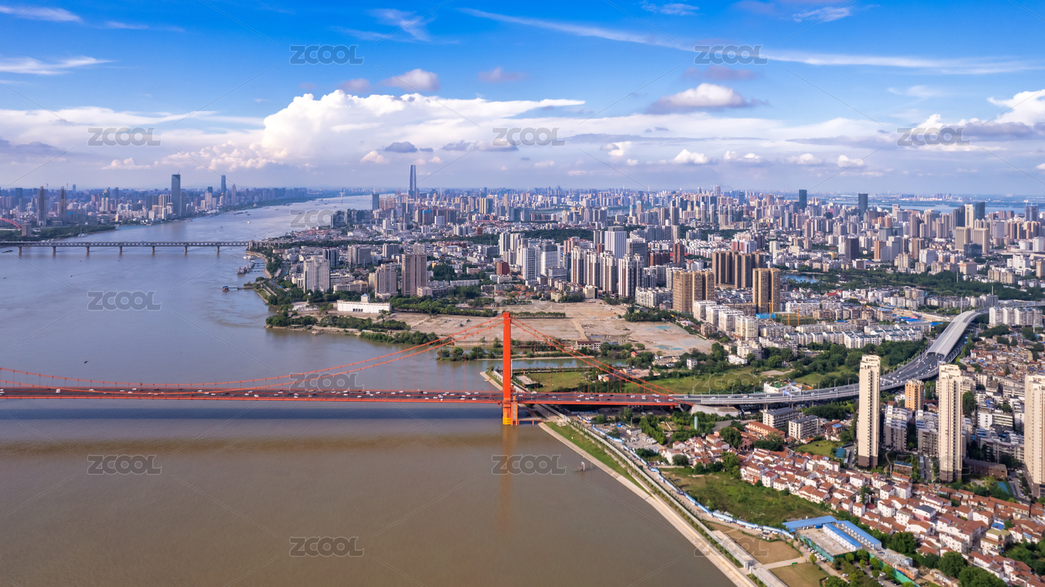 中国湖北武汉鹦鹉洲长江大桥城市航拍