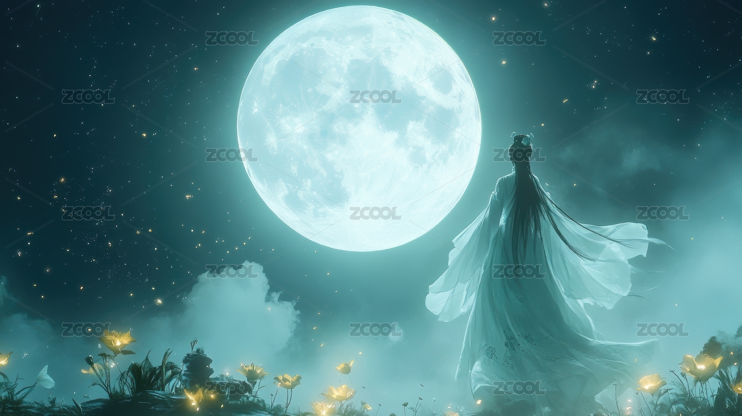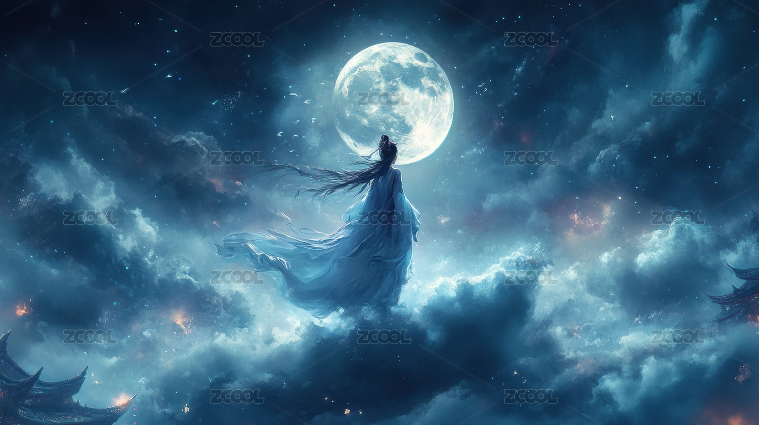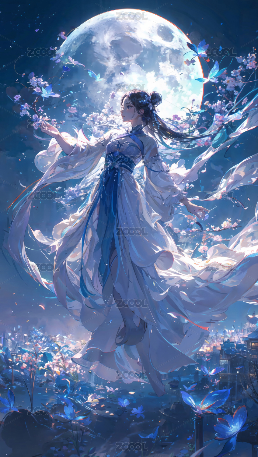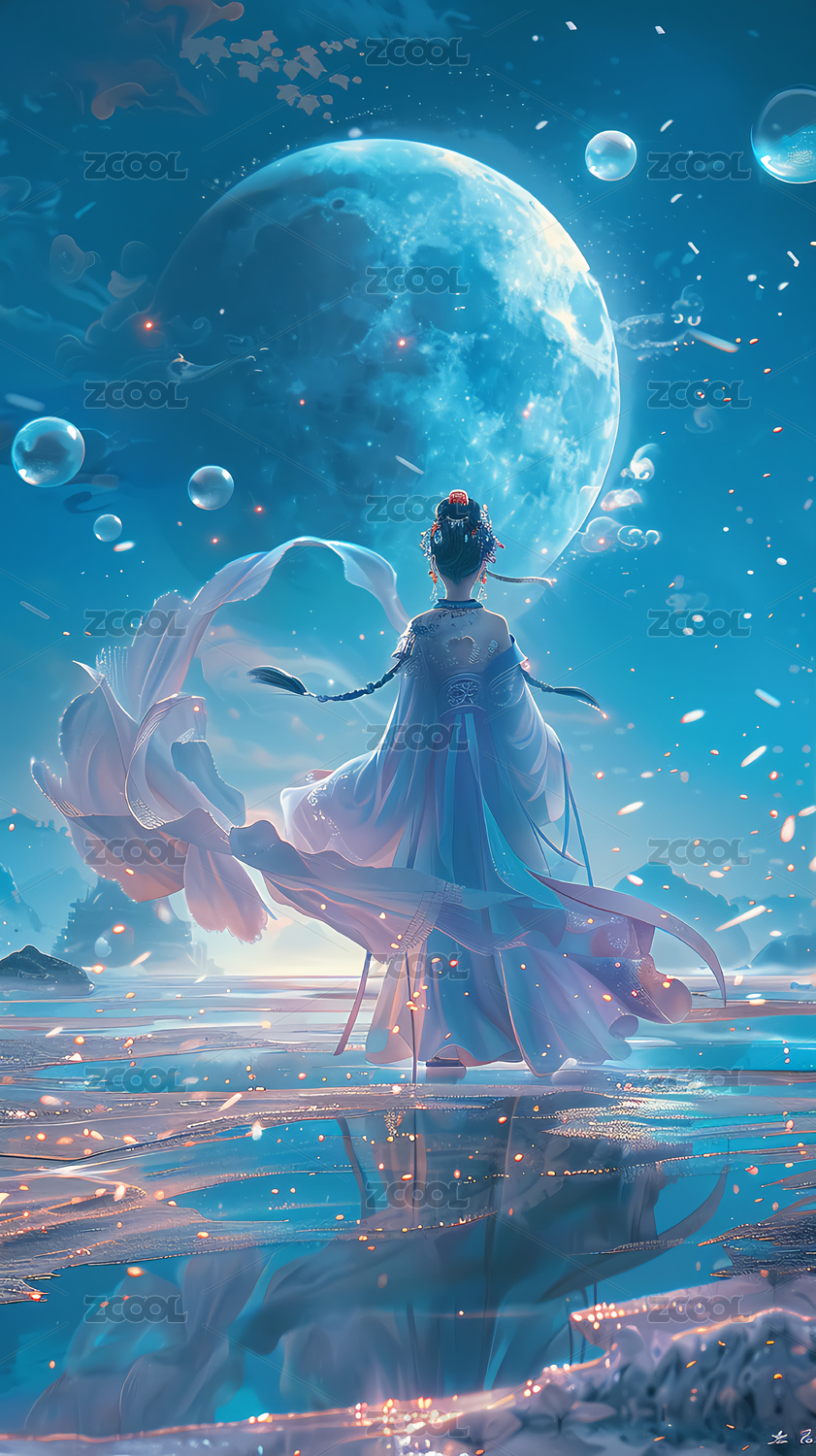 月光下的女子传统服饰唯美意境