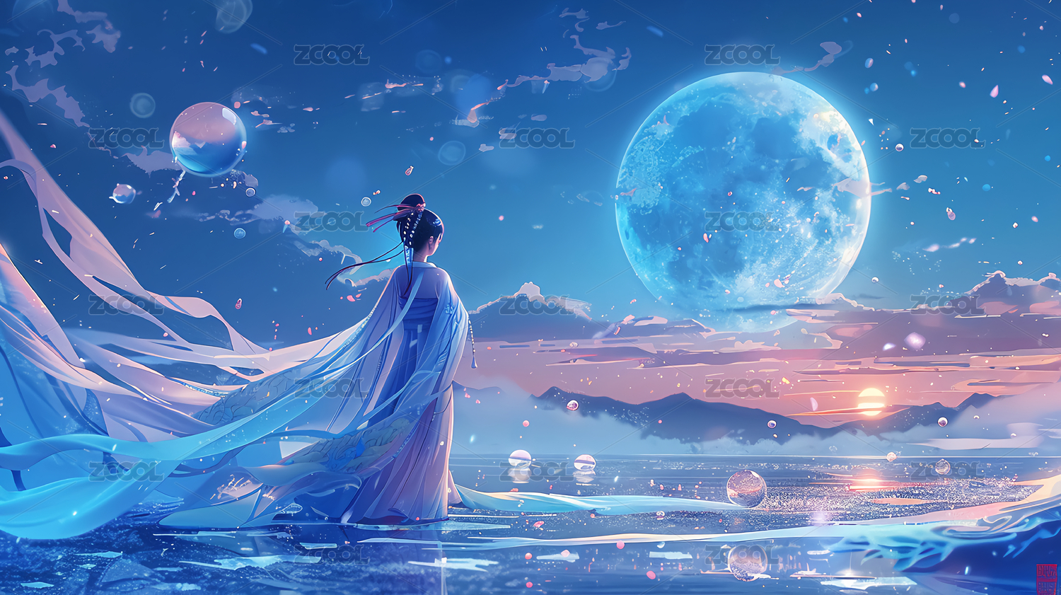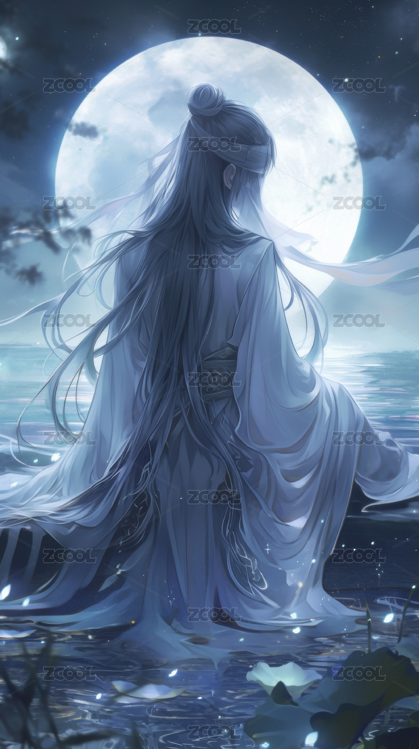 月下仙人临水而坐唯美意境