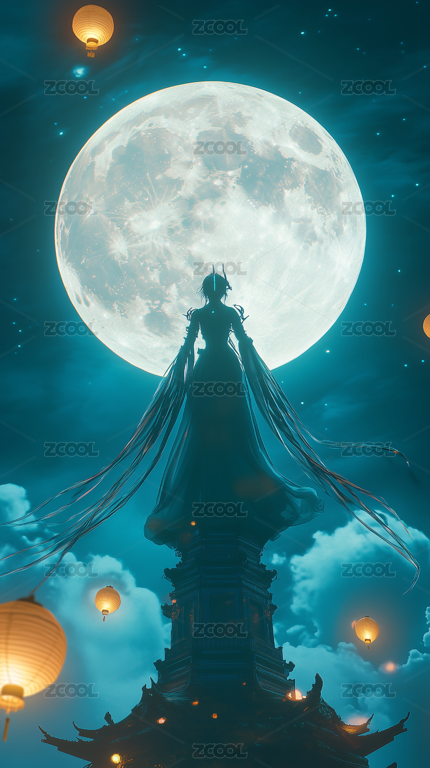AIGC202407,神话,中秋,嫦娥,美丽,动漫