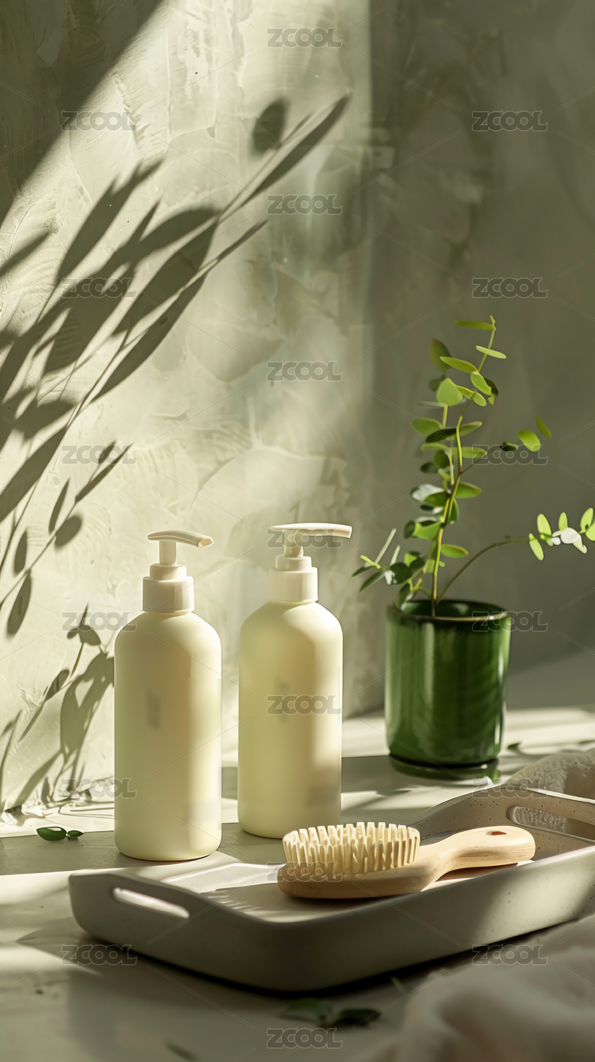 护肤,空瓶,产品,展示,场景,植物,阳光,静物