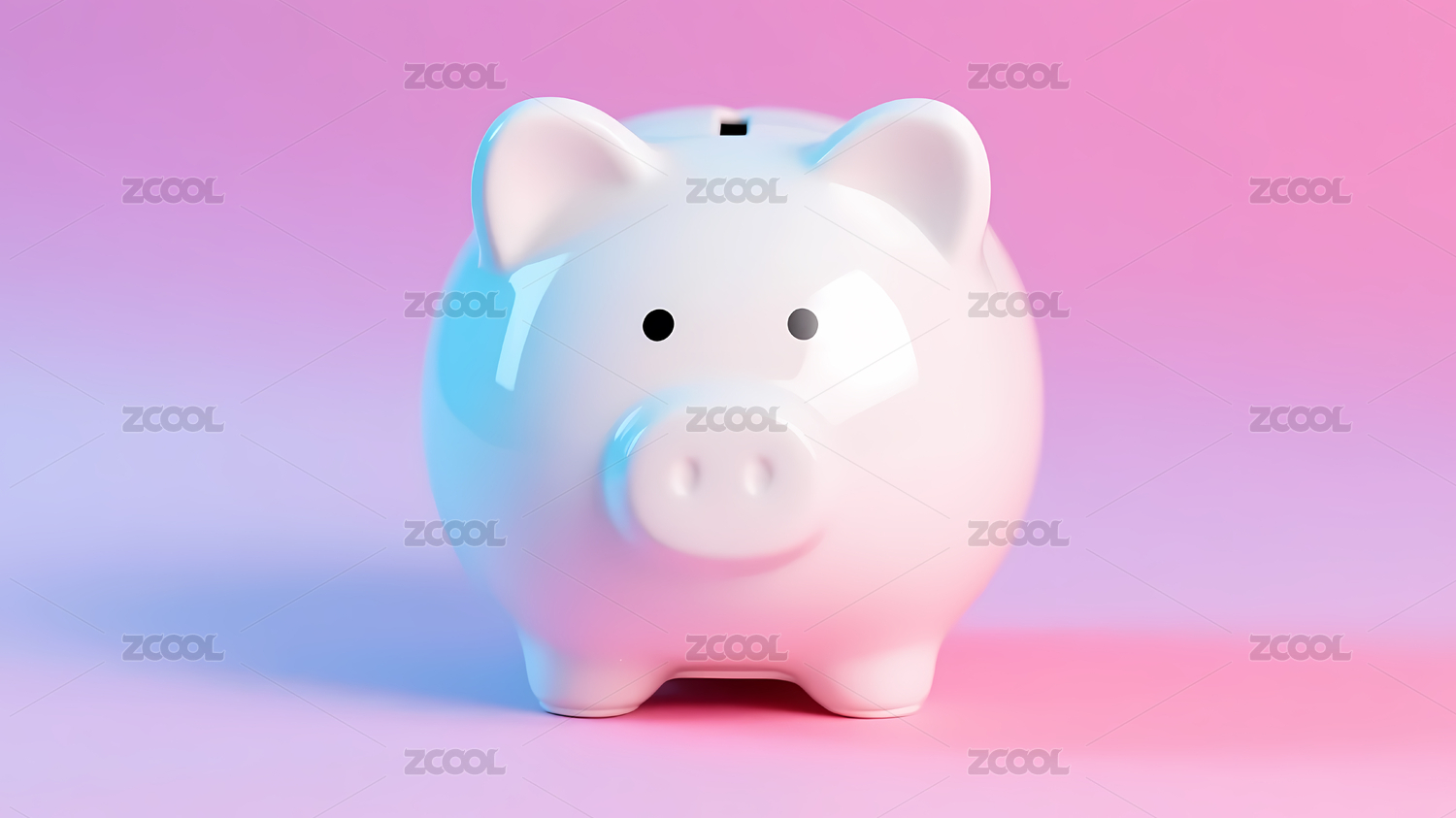 粉色蓝色渐变小猪存钱罐