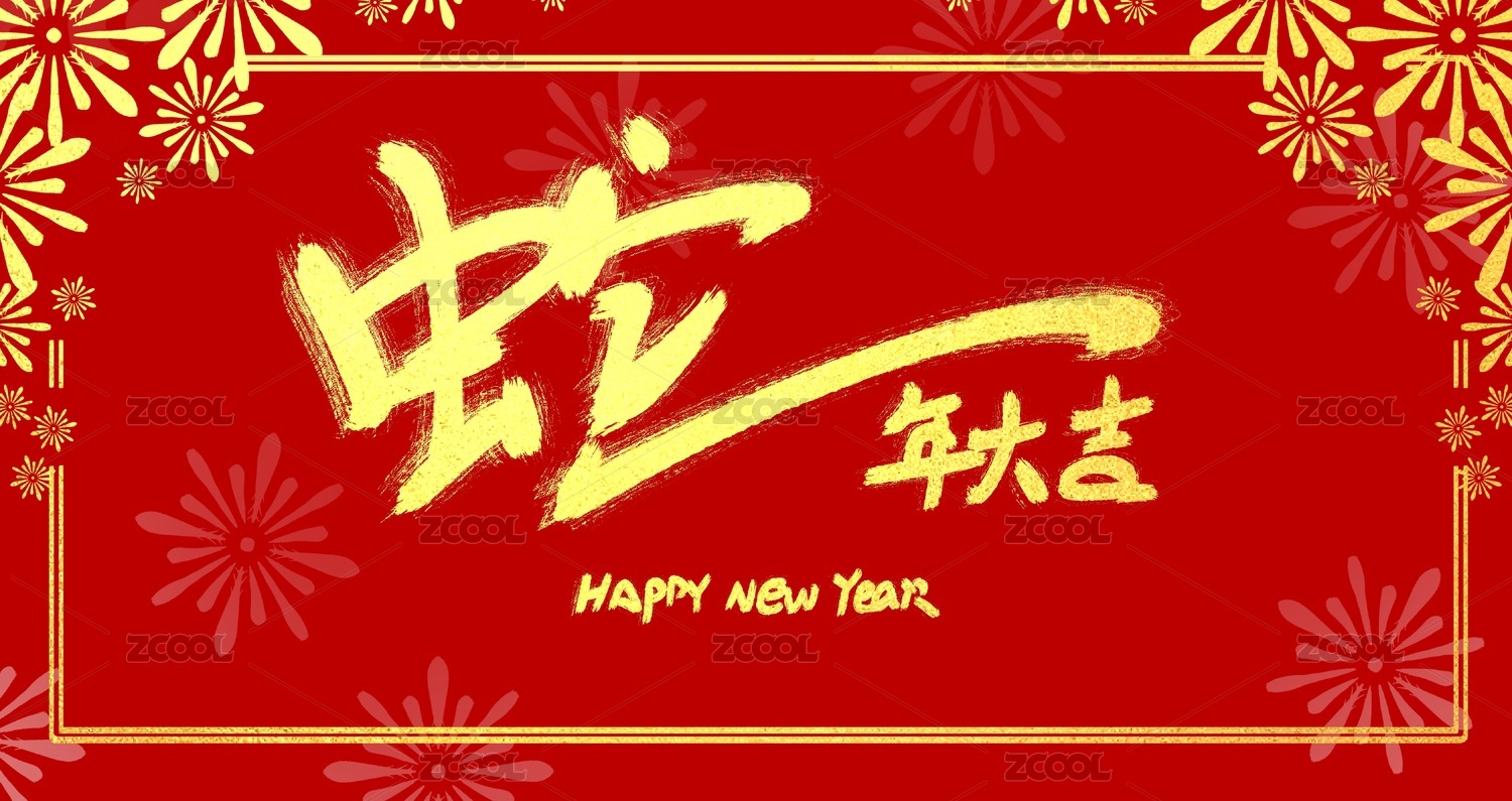 红色背景节日新年春节艺术字手写