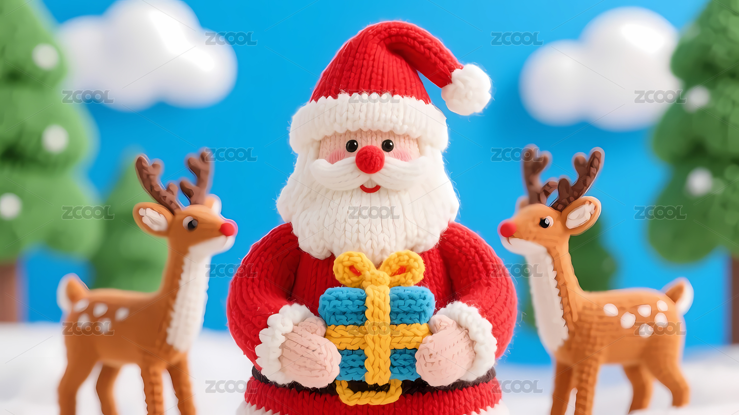3D毛线编织圣诞节圣诞老人贺卡