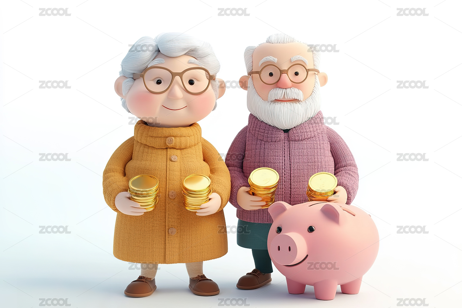 老年人夫妻存钱理财的3d插画
