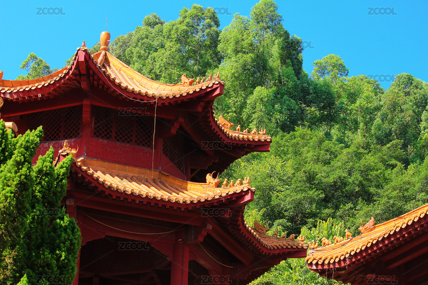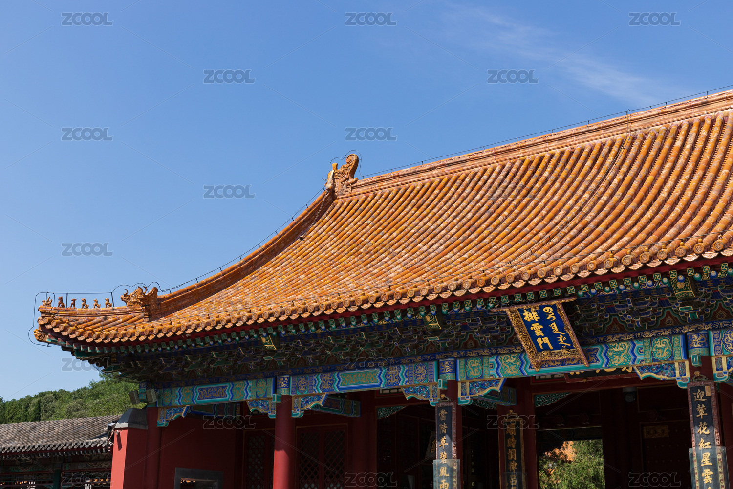中国北京颐和园皇家古建一角——琉璃瓦瑞兽斗拱彩绘描金