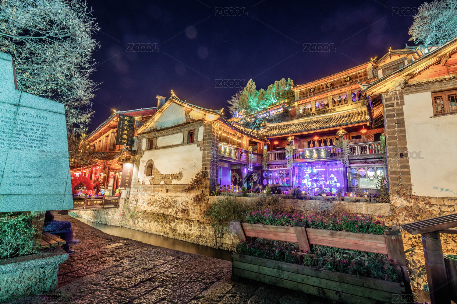 云南,大理,古城,建筑,夜景,灯光,花,樱花,古建筑,五华楼
